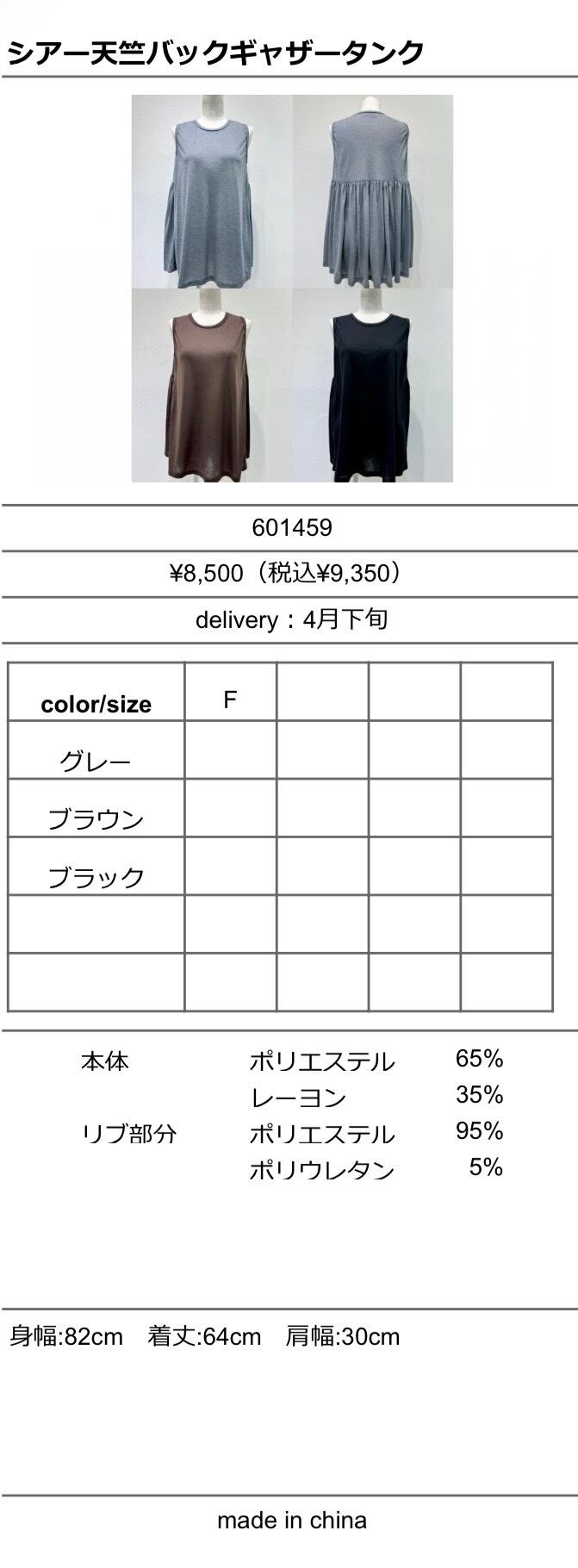 予約販売【 CYAN TOKYO 】シアー天竺バックギャザータンク (601459) 4月下旬頃入荷発送