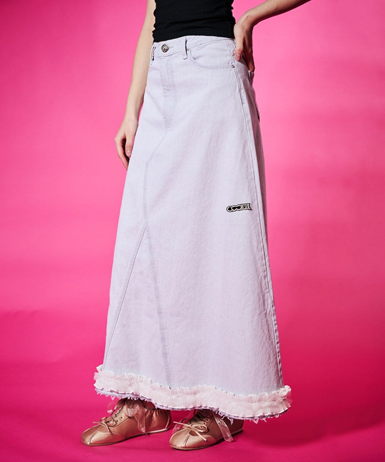 予約販売【 COOLA 】CQ-48107 Frill Hem A-line Denim Skirt 4月入荷お届け