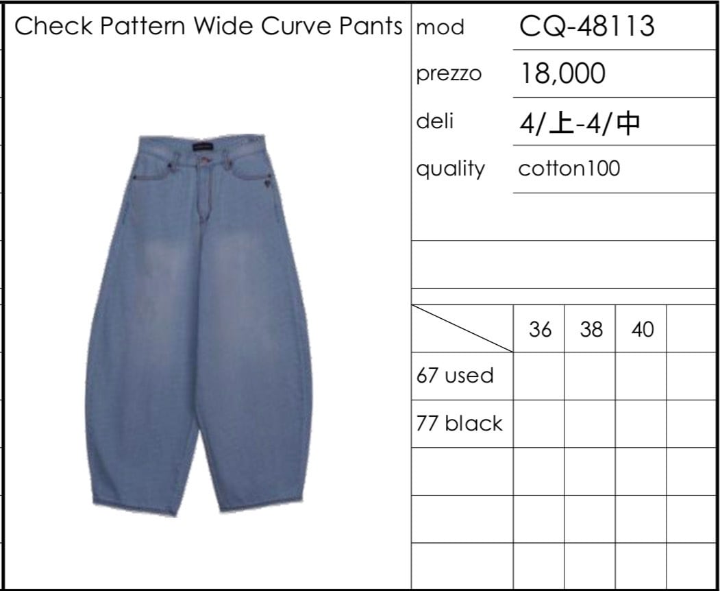 予約販売【 COOLA 】CQ-48113 Check Pattern Wide Curve Pants 4月中旬入荷お届け