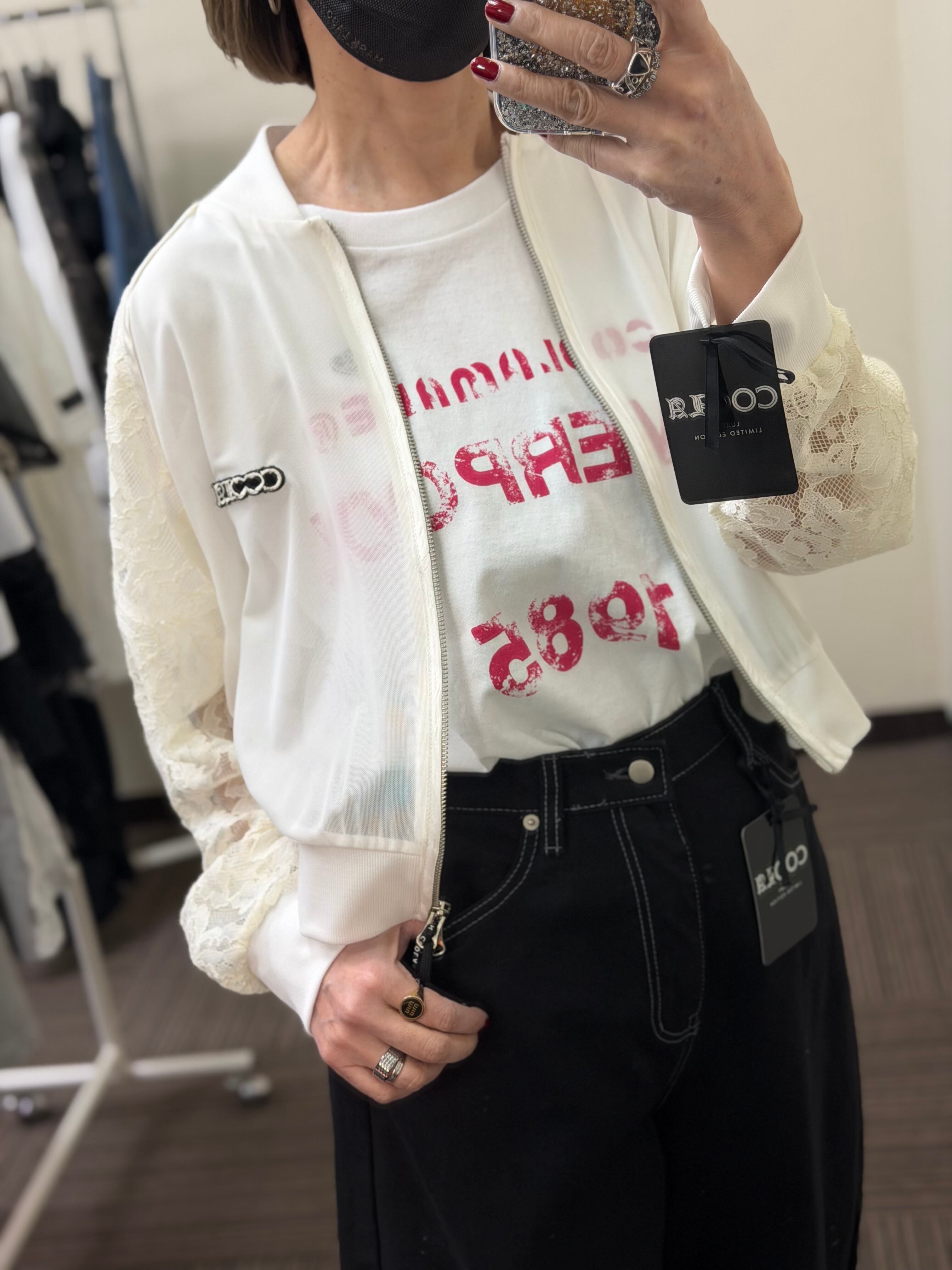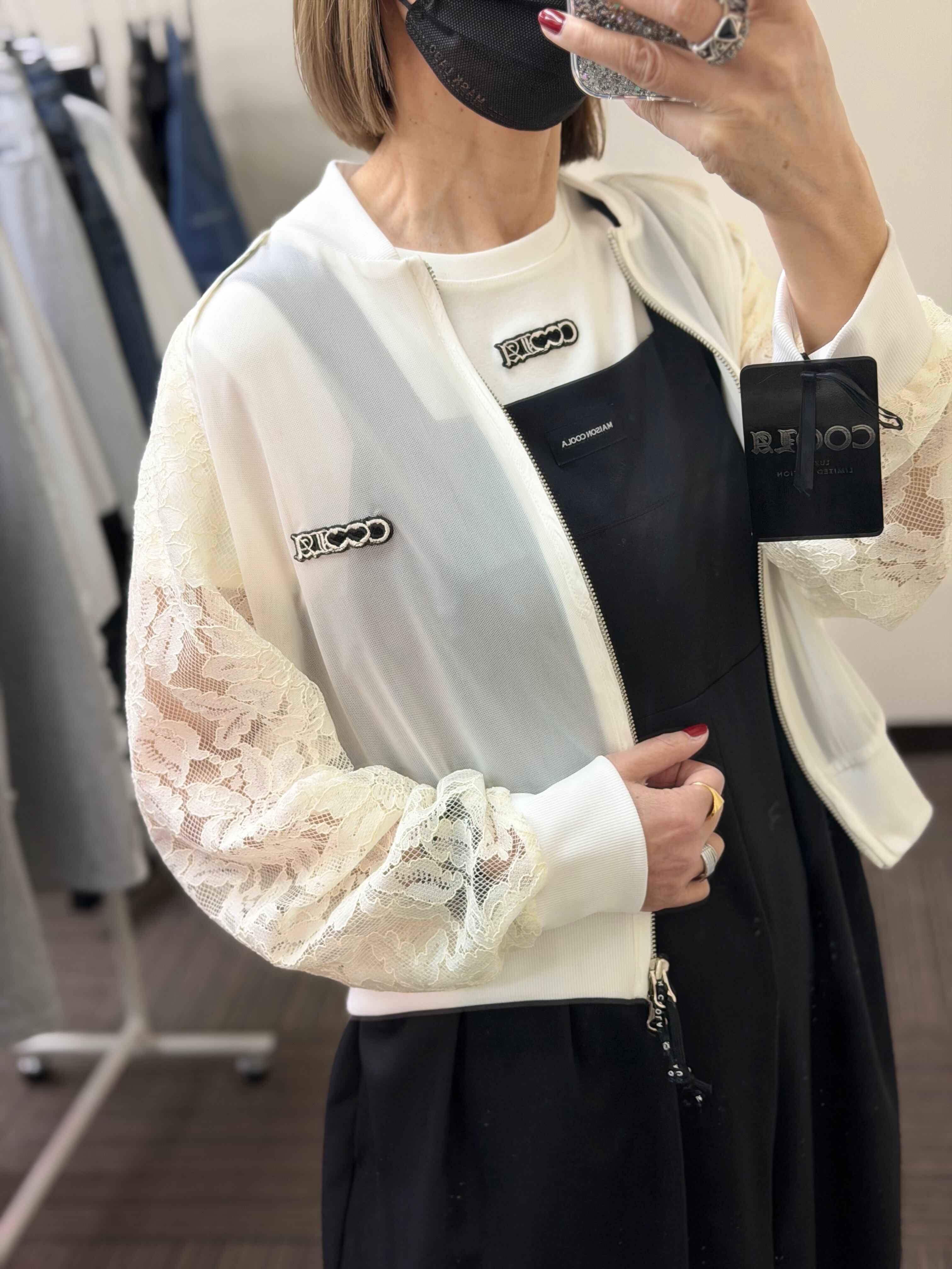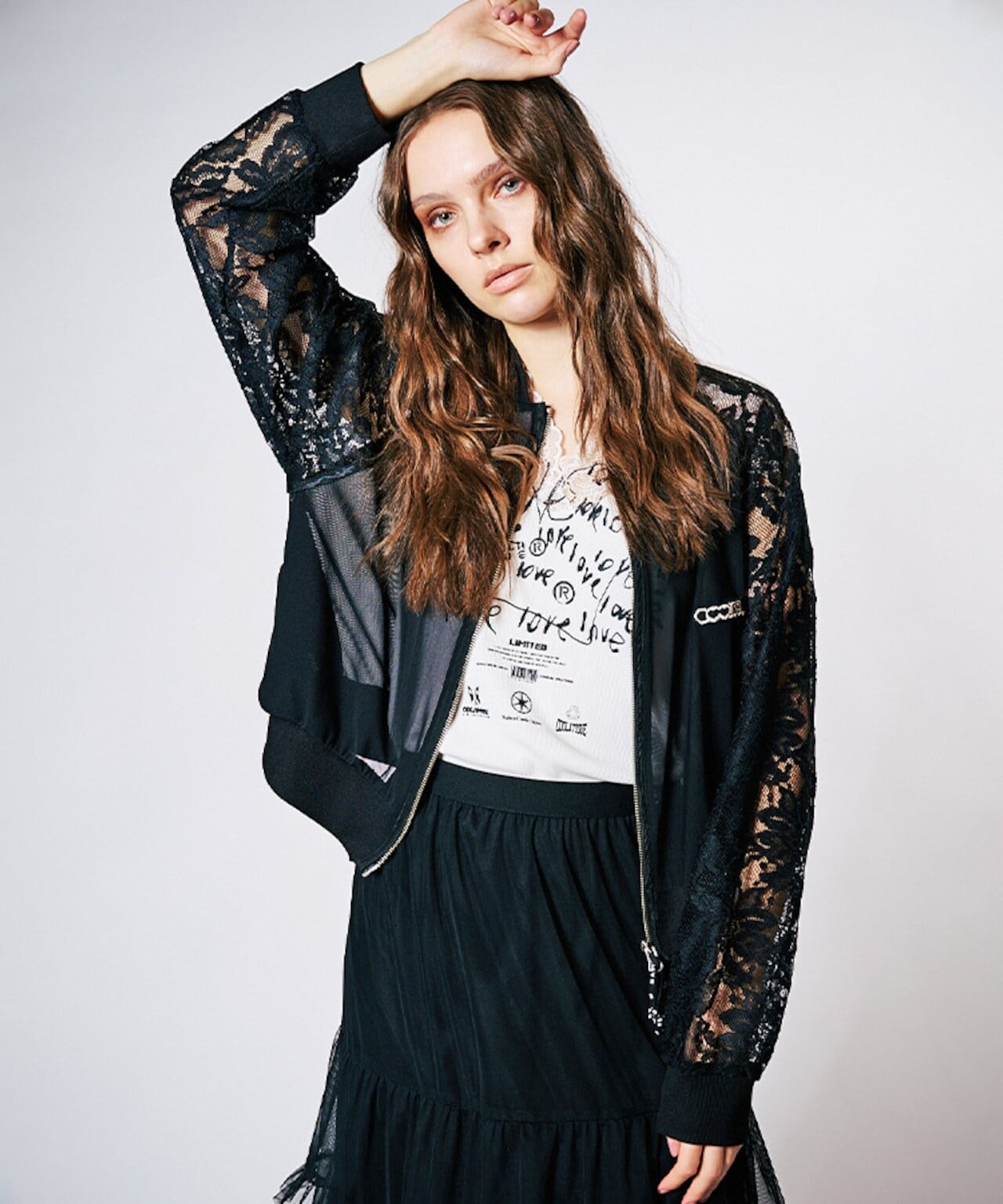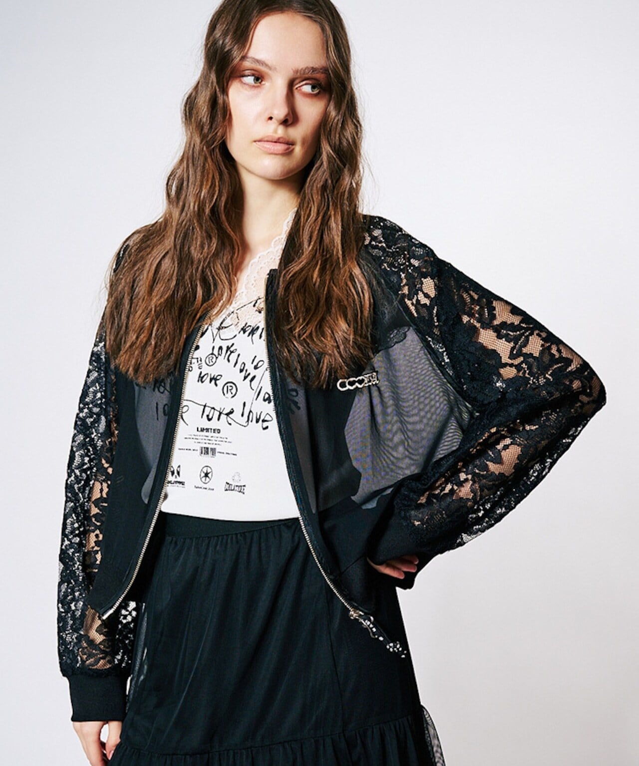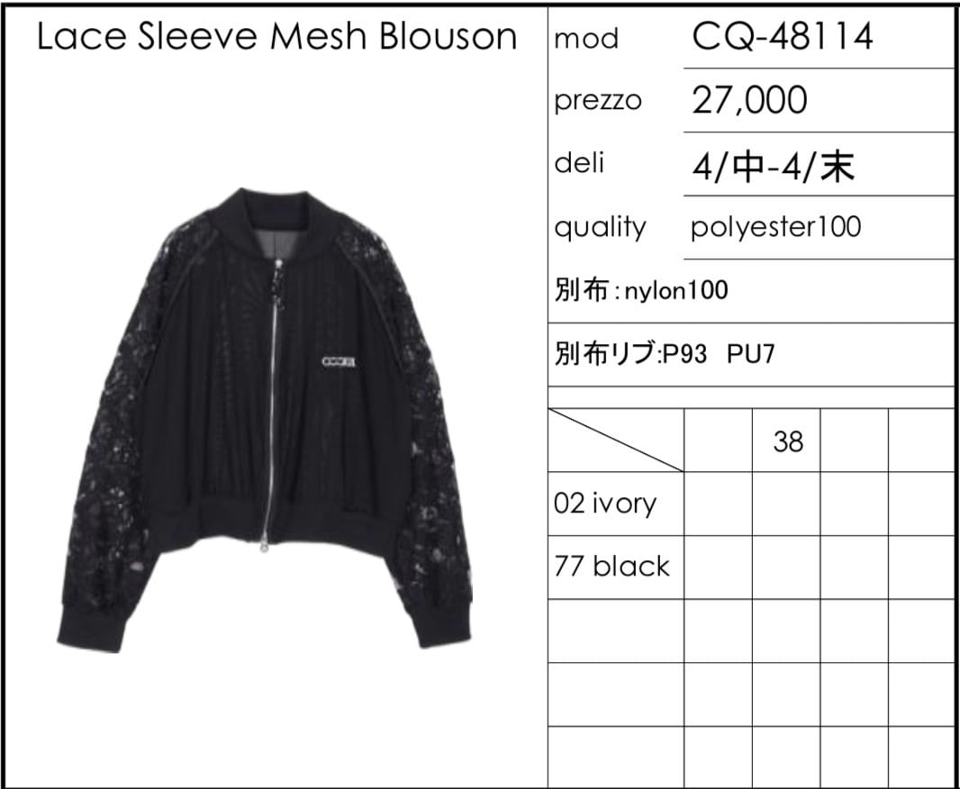予約販売【 COOLA 】CQ-48114 Lace Sleeve Mesh Blouson 4月入荷お届け