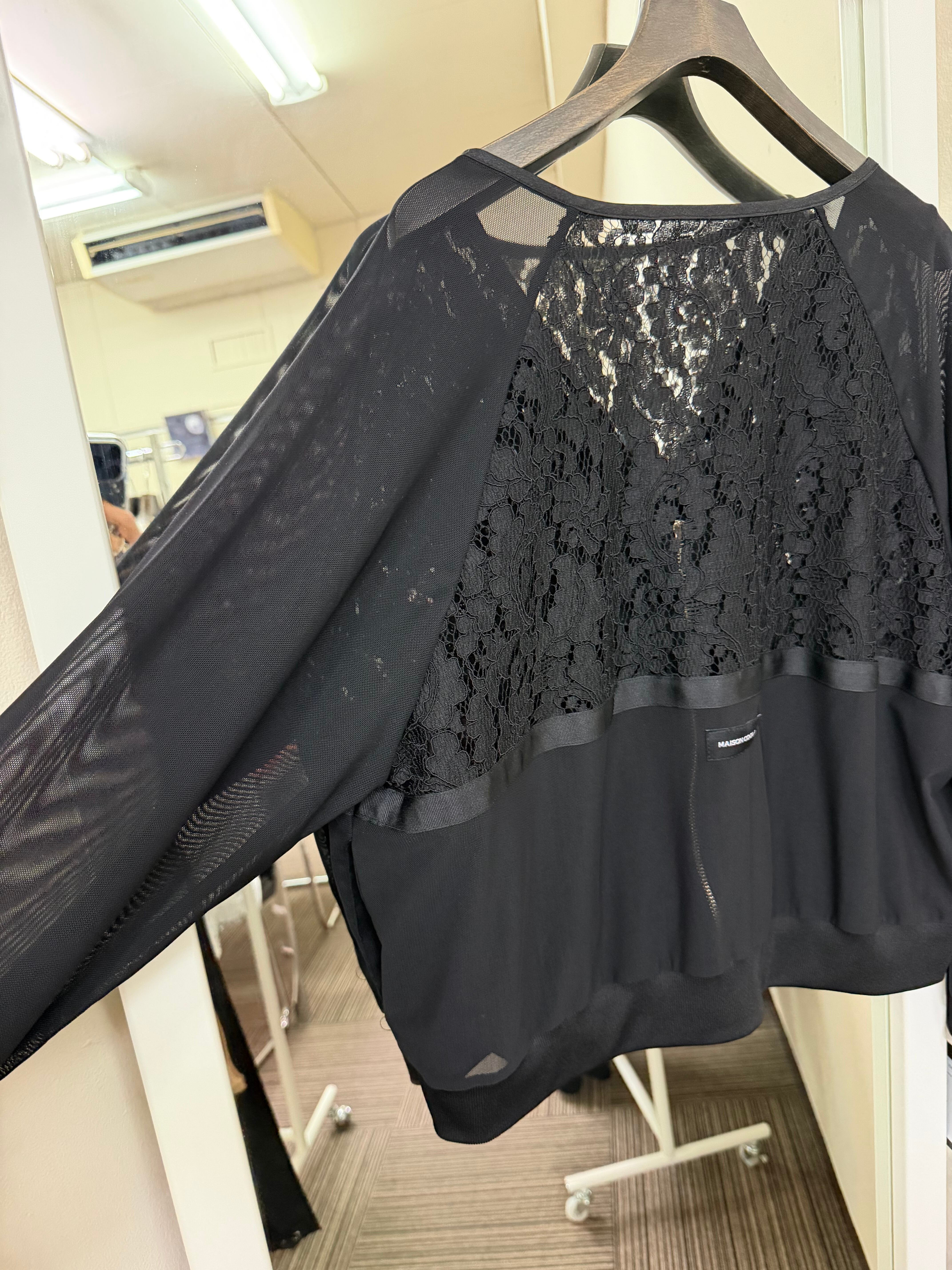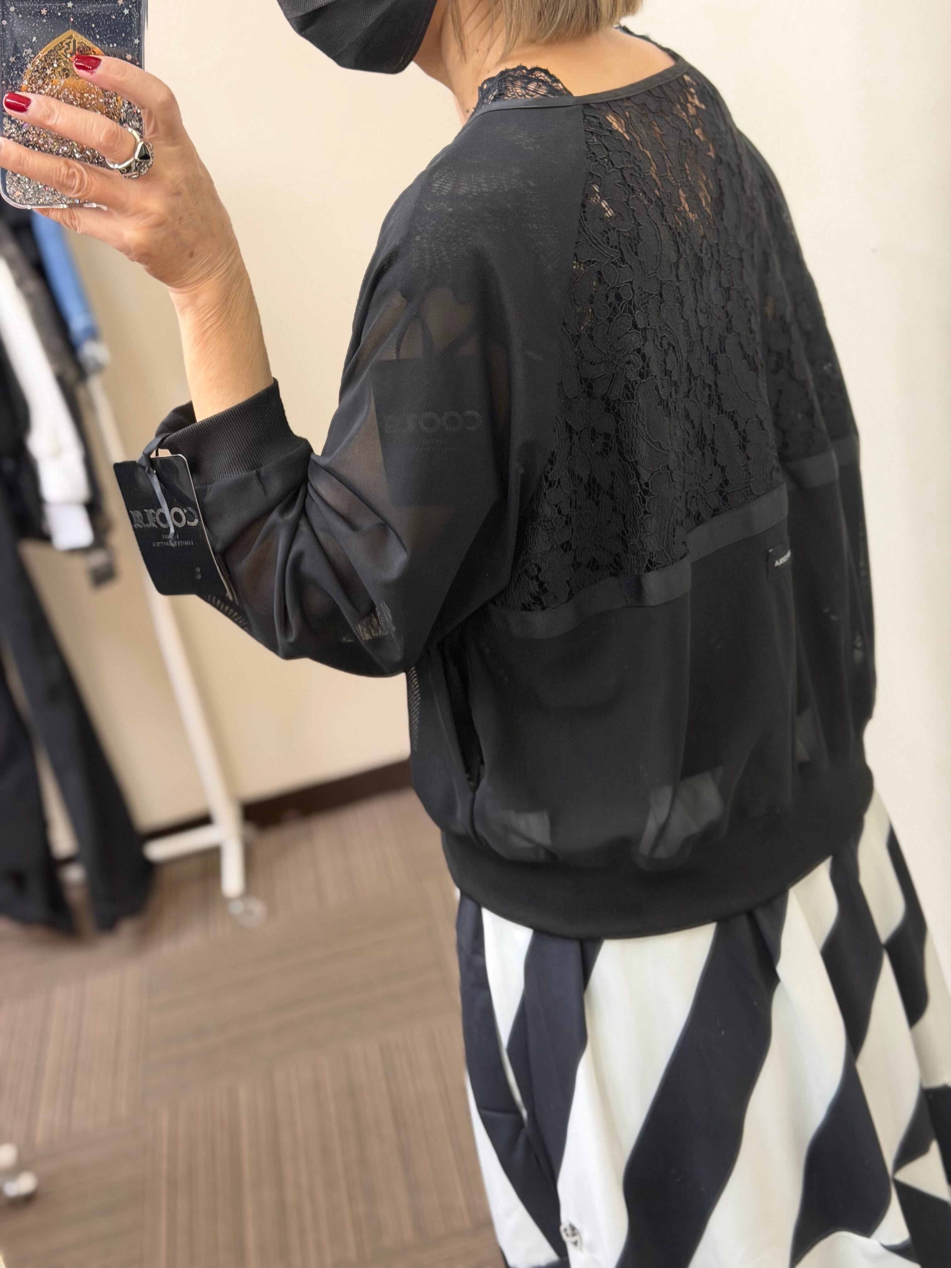 予約販売【 COOLA 】CQ-48118 Lace Switching Vneck Mesh Blouson 4月入荷お届け