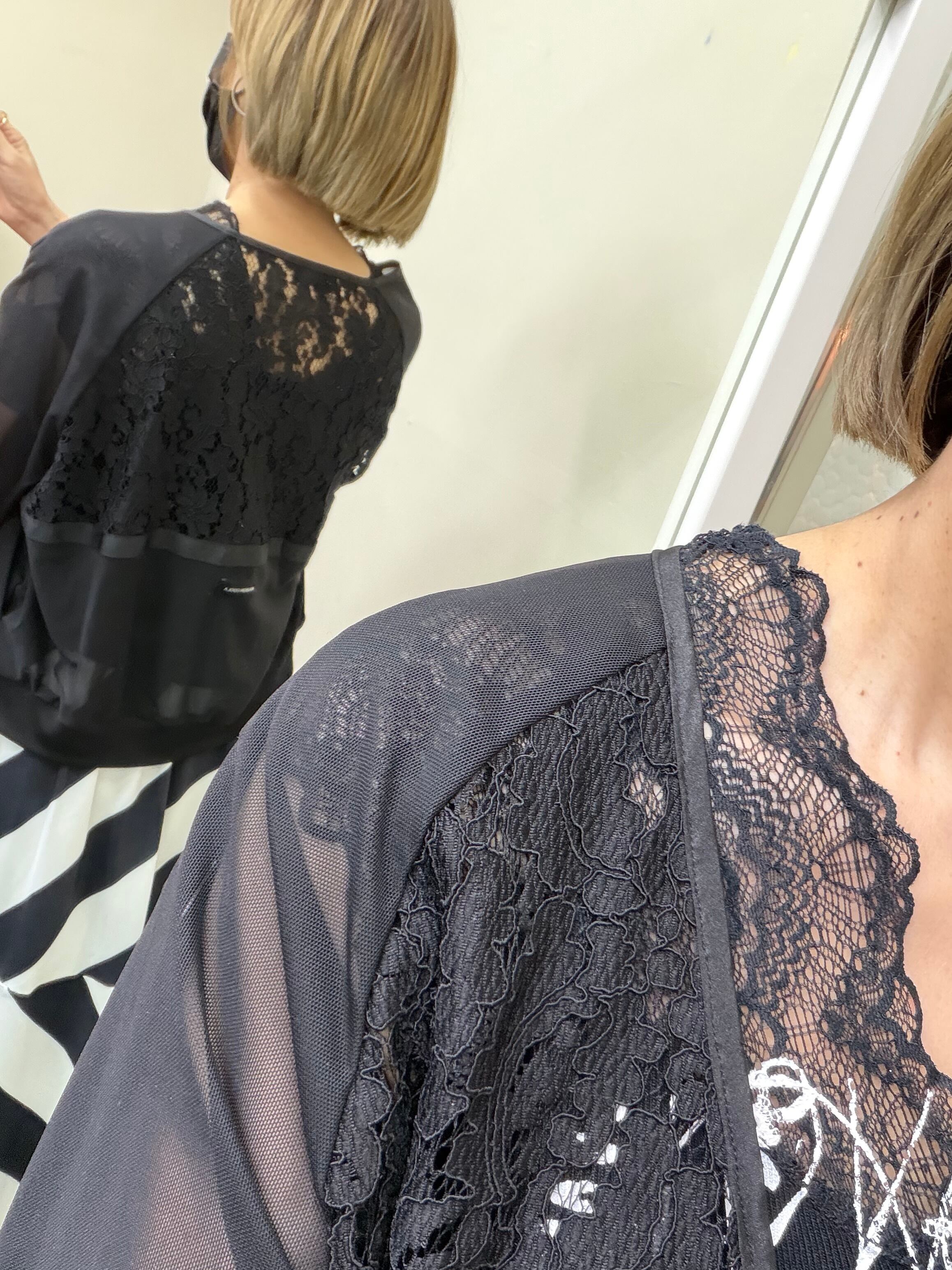 Lace Switching Vneck Mesh Blouson
