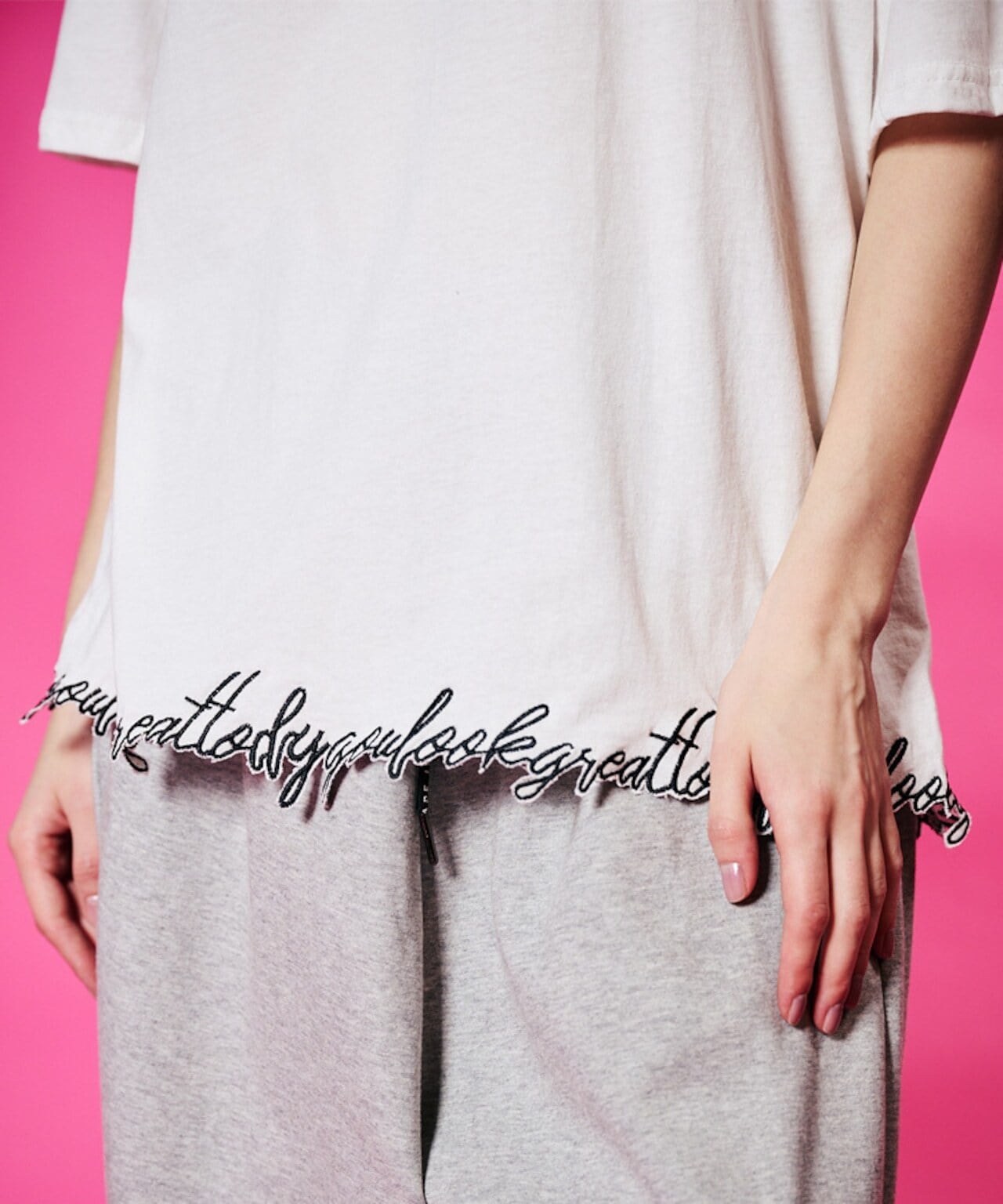 ・裾にレタリング刺繍を施した
