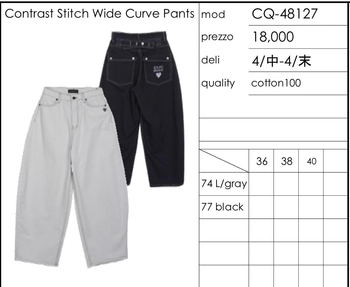 予約販売【 COOLA 】CQ-48127 Contrast Stitch Wide Curve Pants 4月入荷お届け