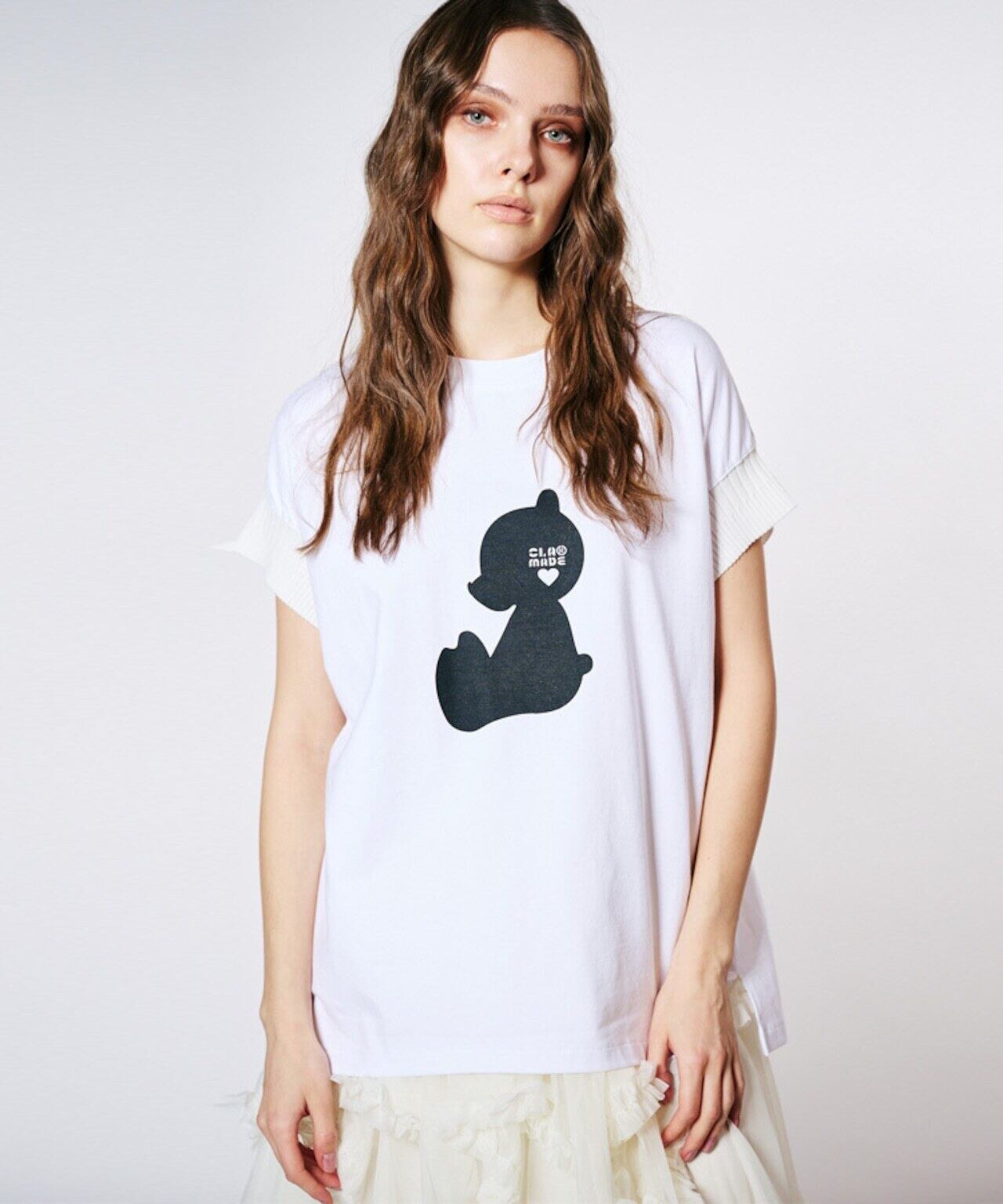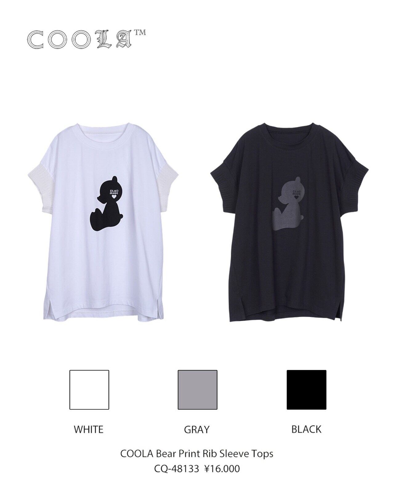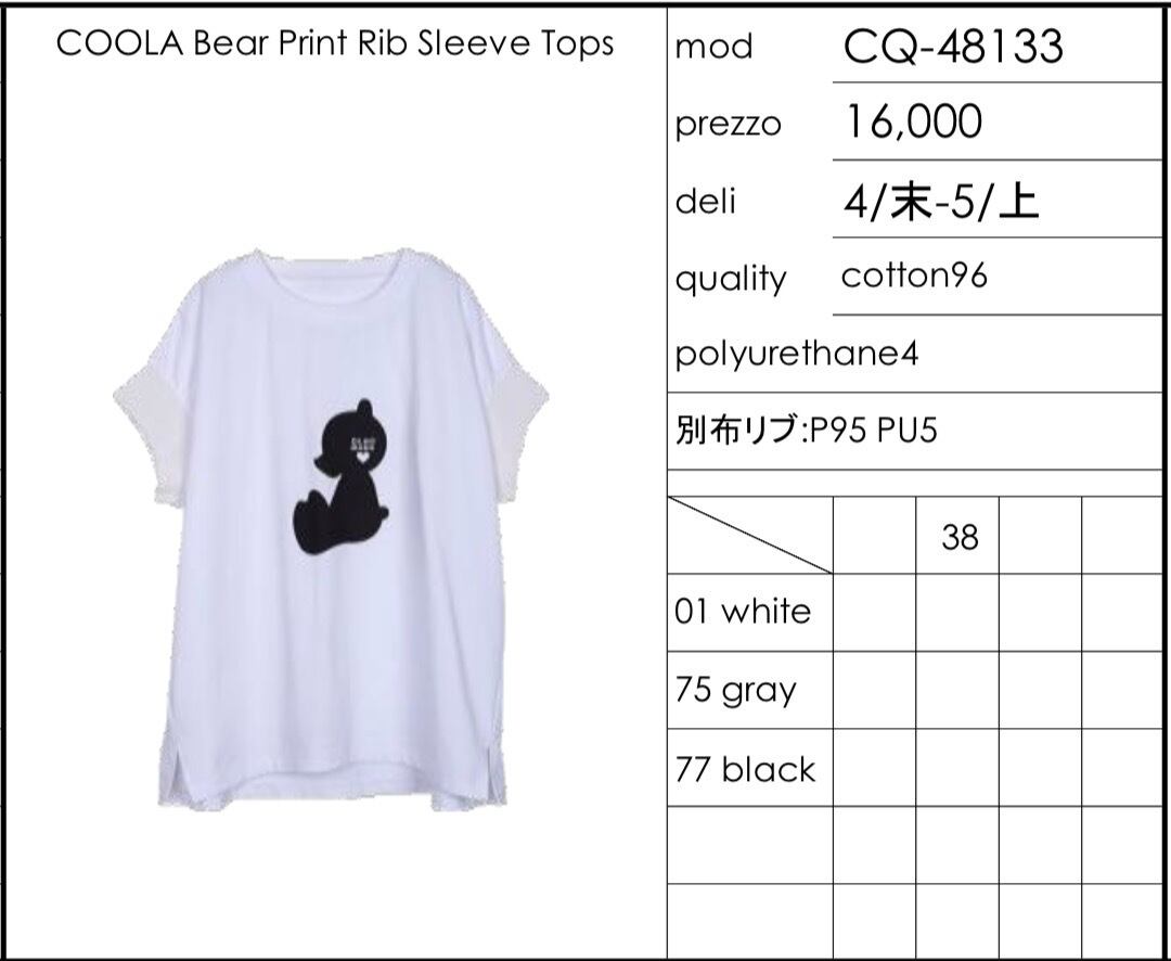 予約販売【 COOLA 】CQ-48133 COOLA Bear Print Rib Sleeve Tops 5月入荷お届け