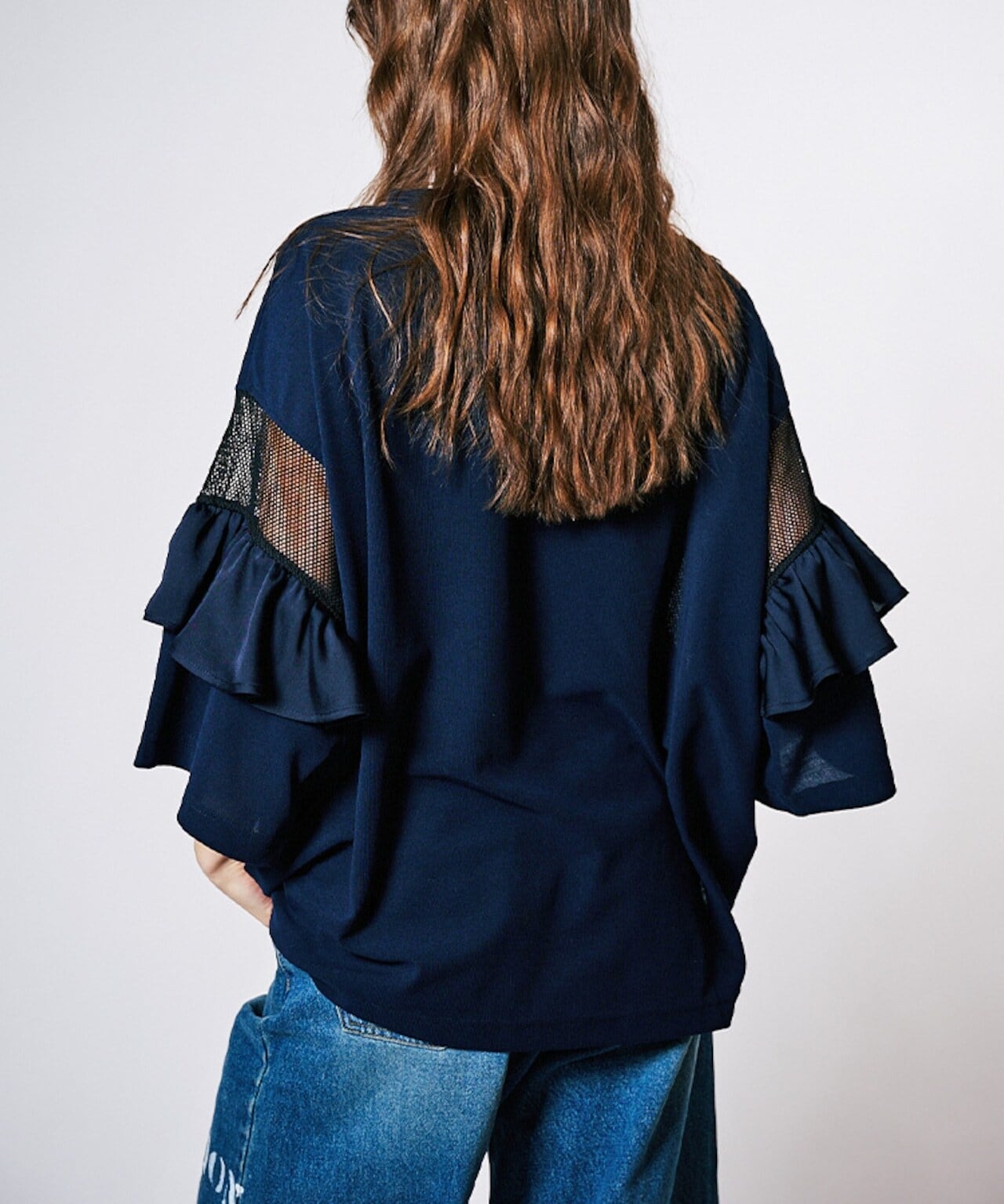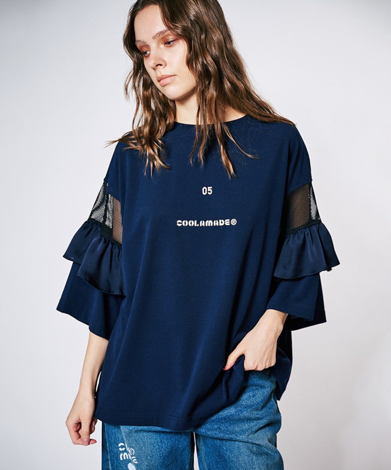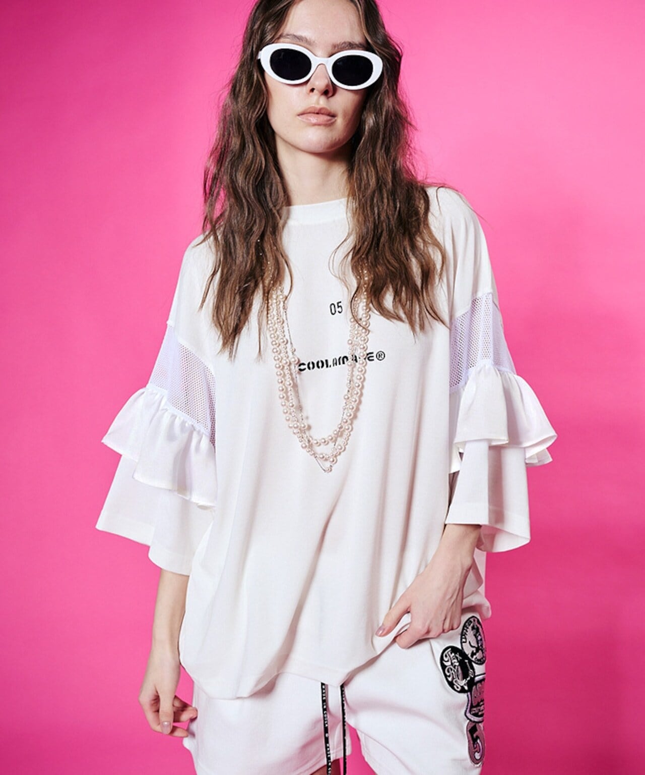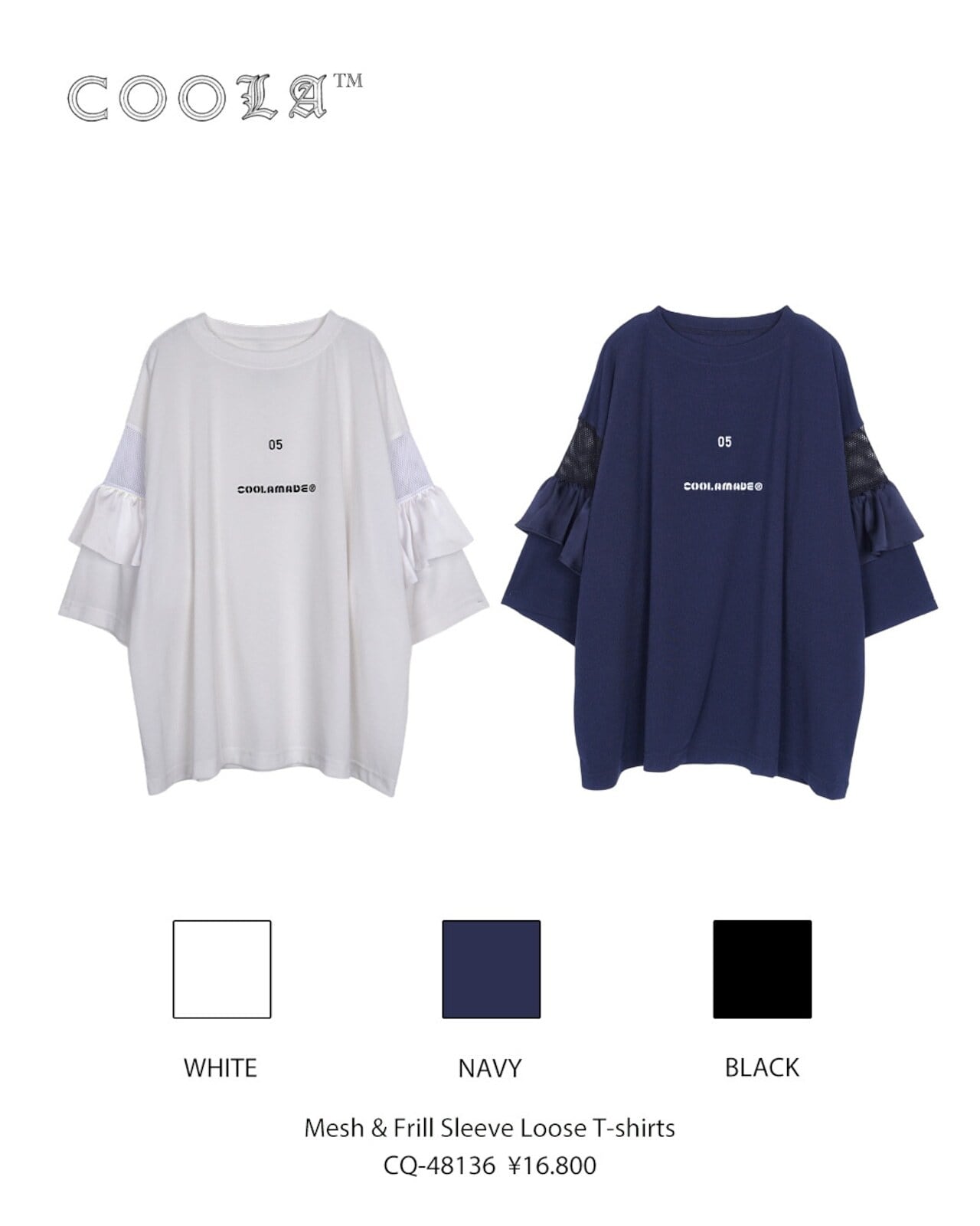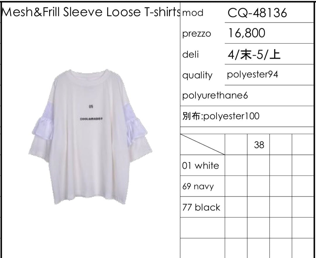 予約販売【 COOLA 】CQ-48136 Mesh & Frill Sleeve Loose T-shirts 5月入荷お届け