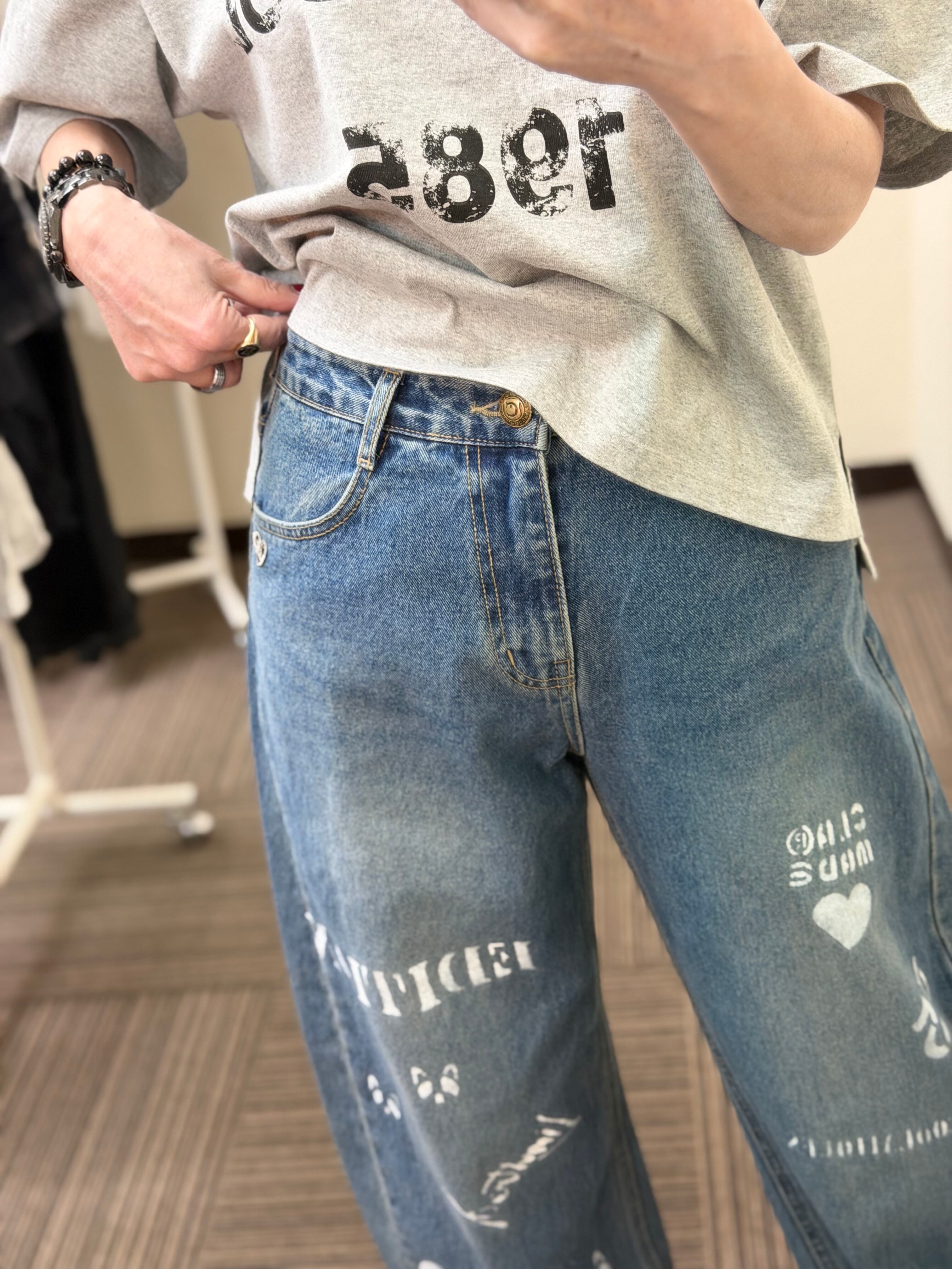 予約販売【 COOLA 】CQ-48138 Mixed Logo Paint Wide Denim Pants 5月上旬入荷お届け