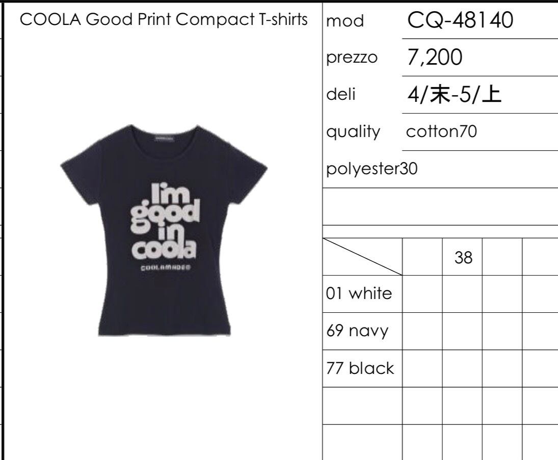 予約販売【 COOLA 】CQ-48140 COOLA Good Print Compact T-shirts 5月入荷お届け