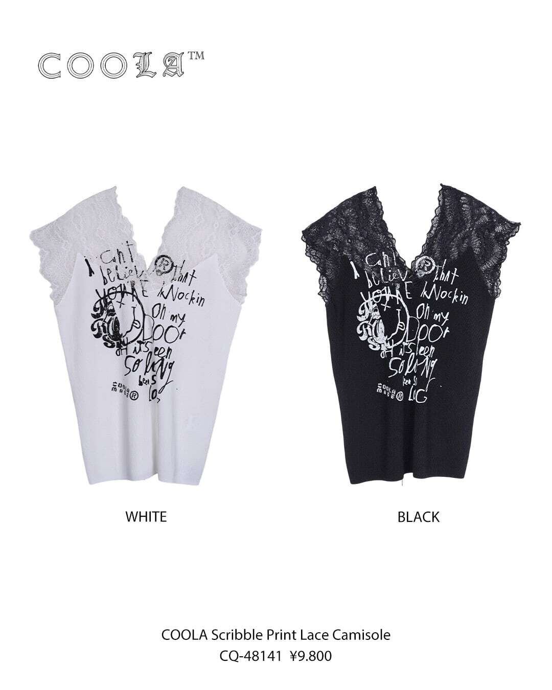 予約販売【 COOLA 】CQ-48141 COOLA Scribble Print Lace Camisole 5月入荷お届け