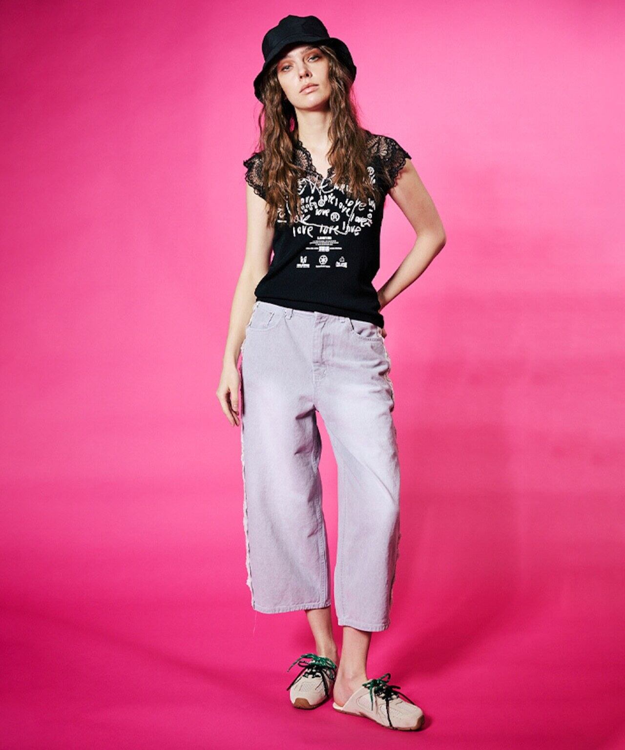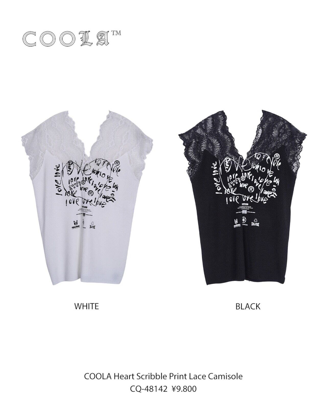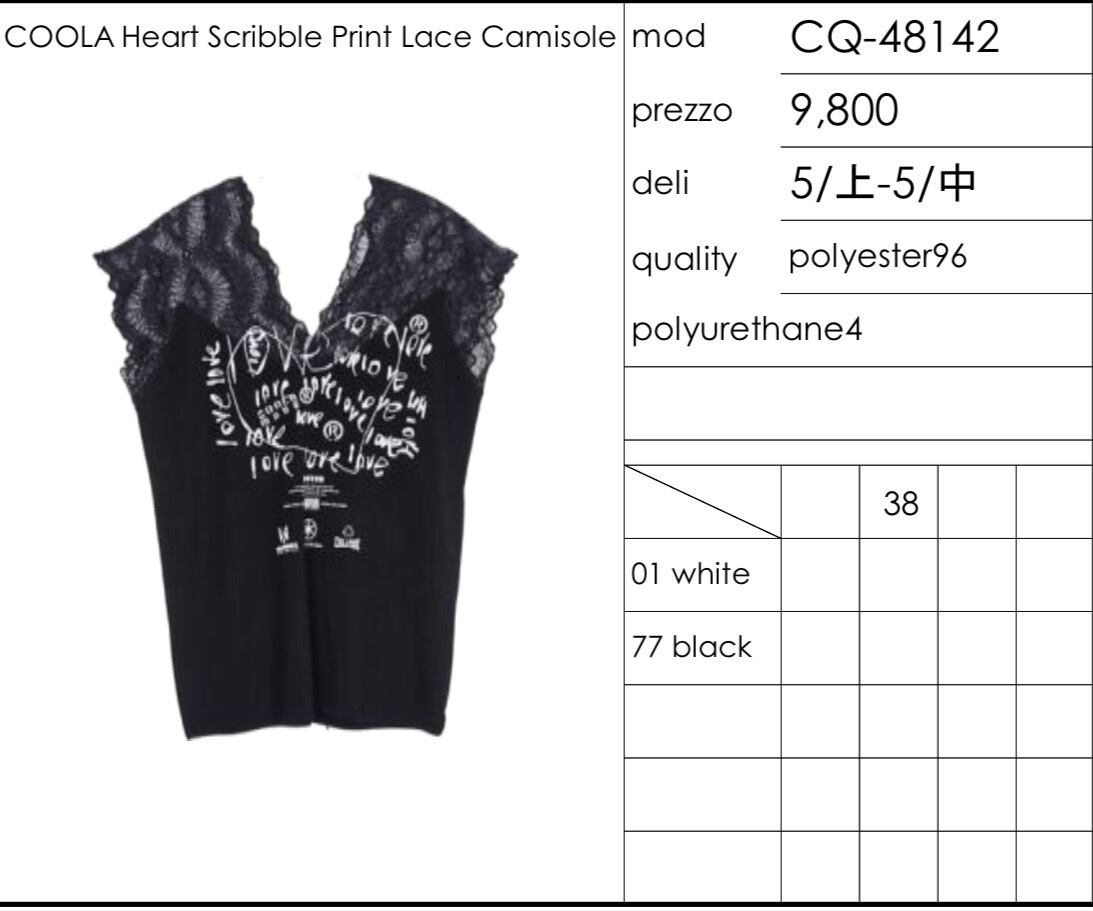 予約販売【 COOLA 】CQ-48142 COOLA Heart Scribble Print Lace Camisole 5月入荷お届け