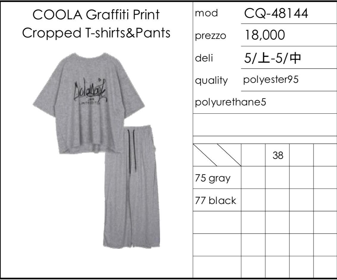 予約販売【 COOLA 】CQ-48144 COOLA Graffiti Print Cropped T-shirts & Pants 5月入荷お届け