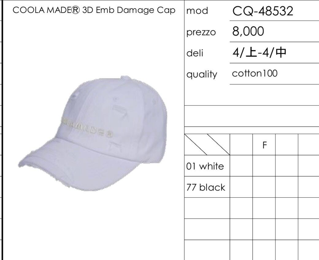 予約販売【 COOLA 】CQ-48532 COOLA MADE® 3D Emb Damage Cap 4月入荷お届け