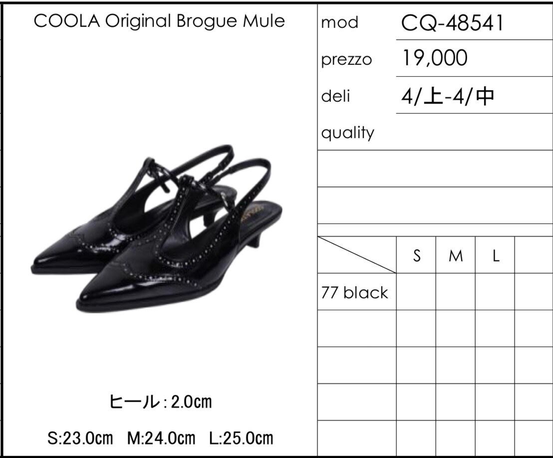 予約販売【 COOLA 】CQ-48541 COOLA Original Brogue Mule 4月入荷お届け