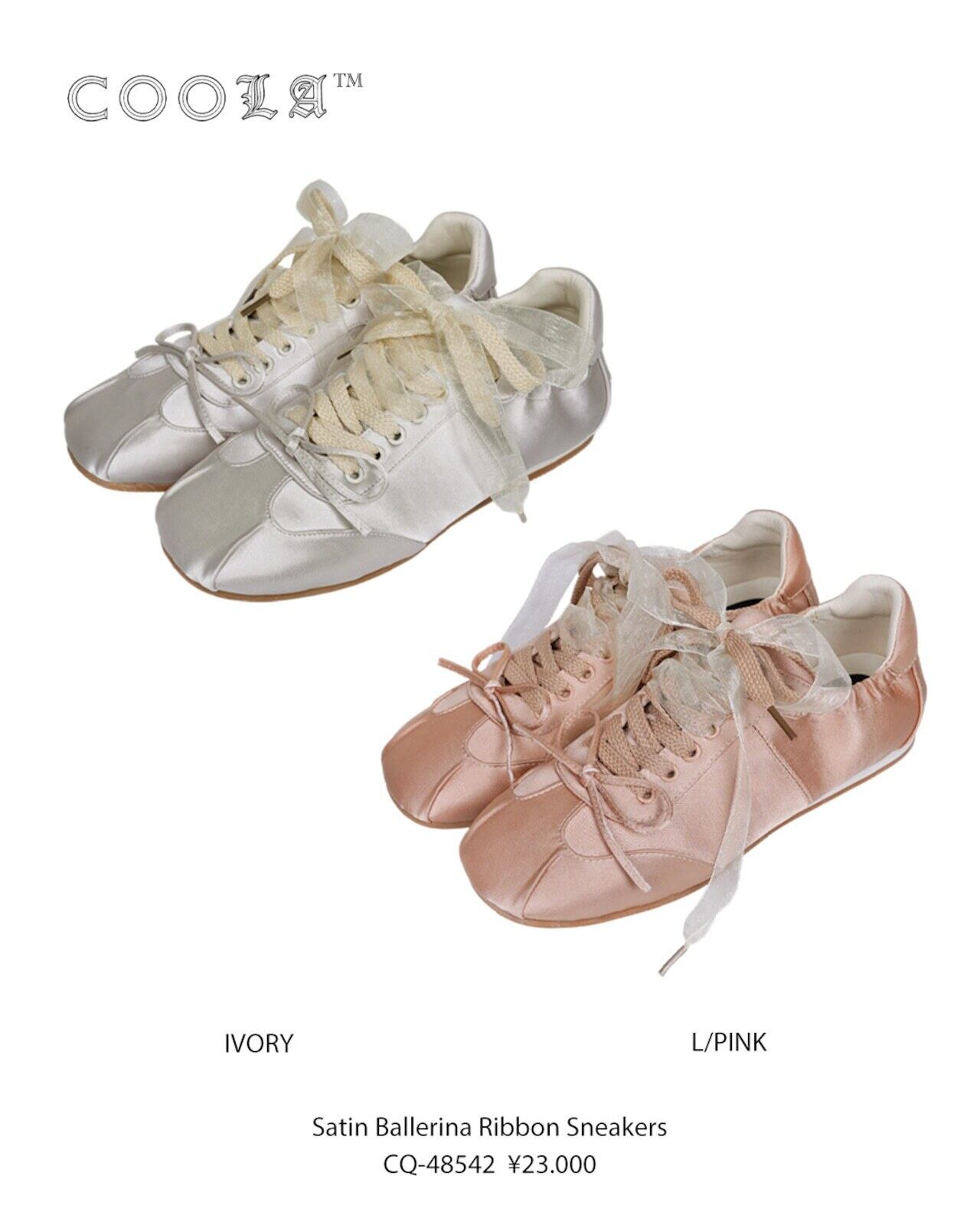 予約販売【 COOLA 】CQ-48542 Satin Ballerina Ribbon Sneakers 4月入荷お届け