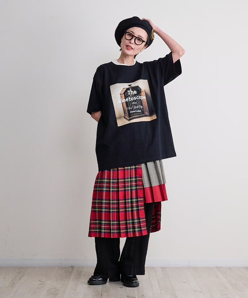 ランダムな着丈になっているので、一枚で着ると足が見えますが、薄手のスカートなどとの重ね着をすることでロングスカート風としても着ることができます。合わせるボトムで変化がつけられて楽しめる一枚です。