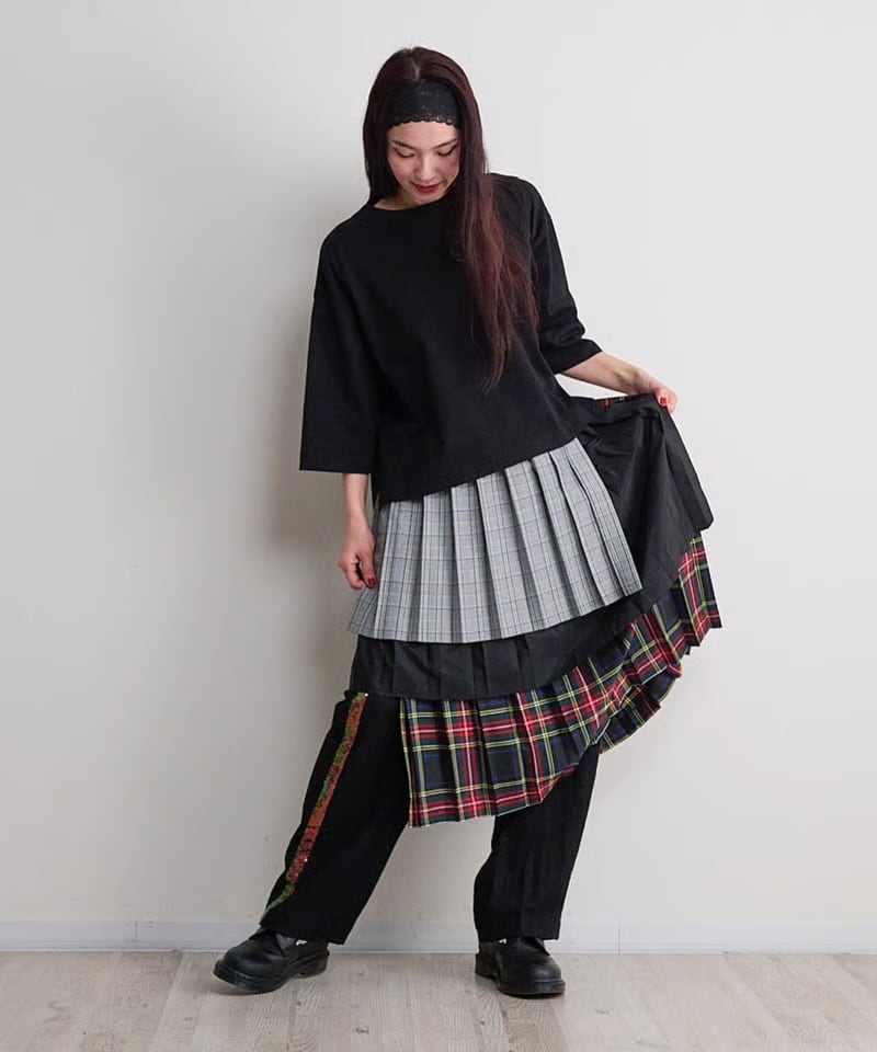 チェックラップドプリーツ