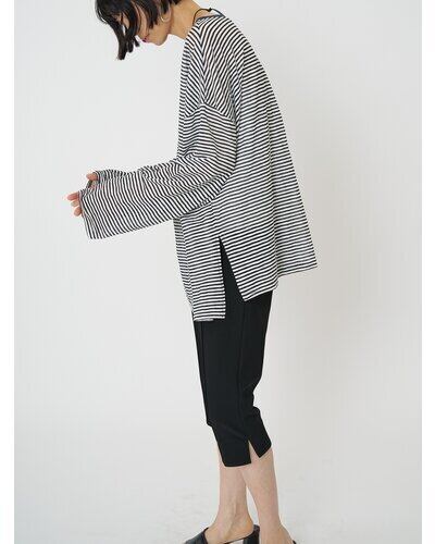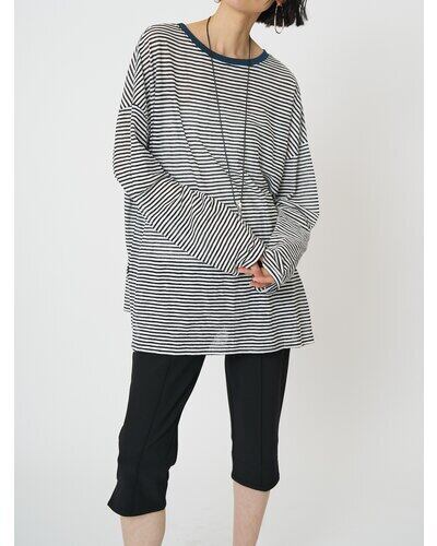 シンプルなボーダー柄は、デニムやスラックスなどどんなボトムとも好相性です。また、トップスのインナーとしてチラ見せレイヤードスタイルもおすすめです。