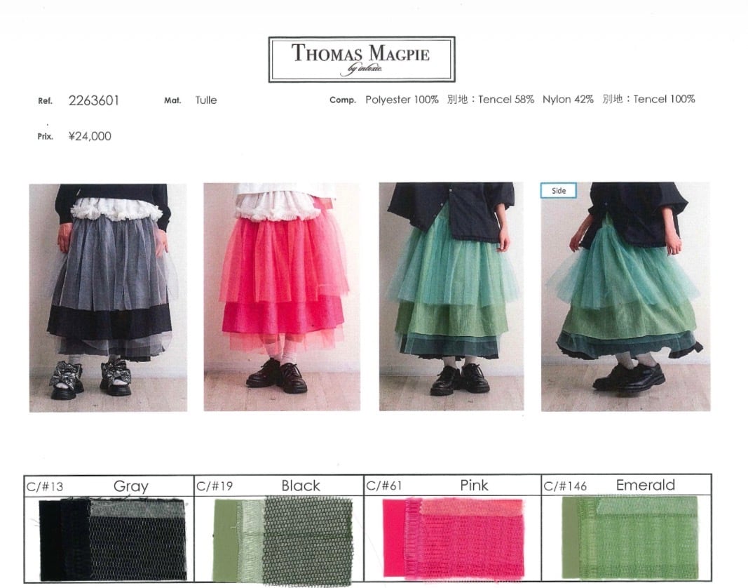 予約販売【 THOMAS MAGPIE 】over tulle skirt (2263601) 8月お届け