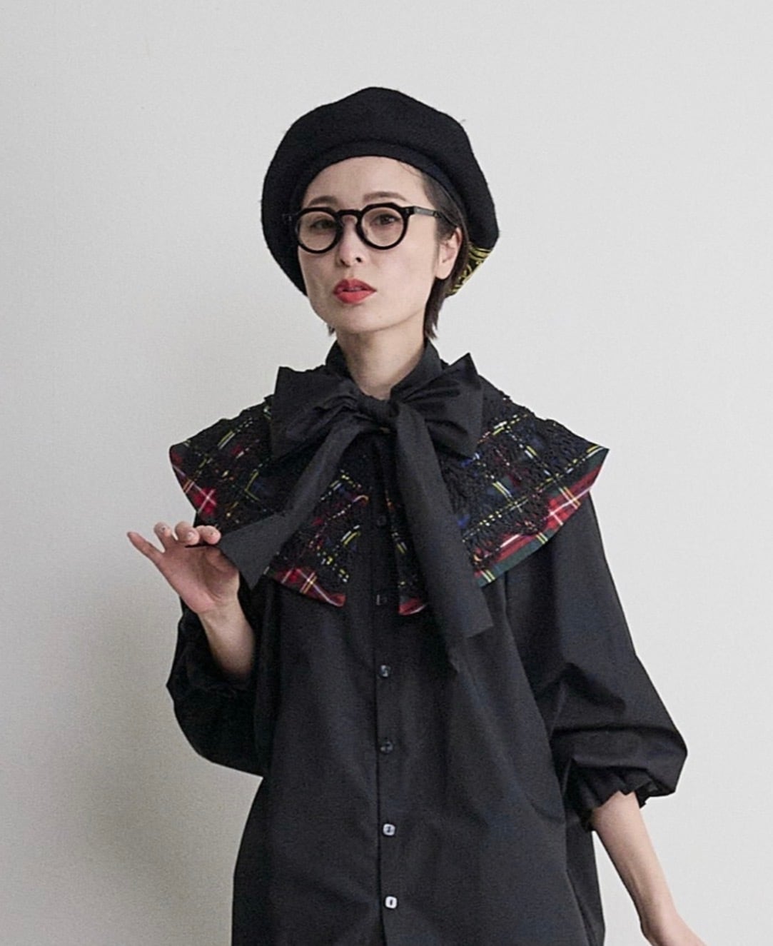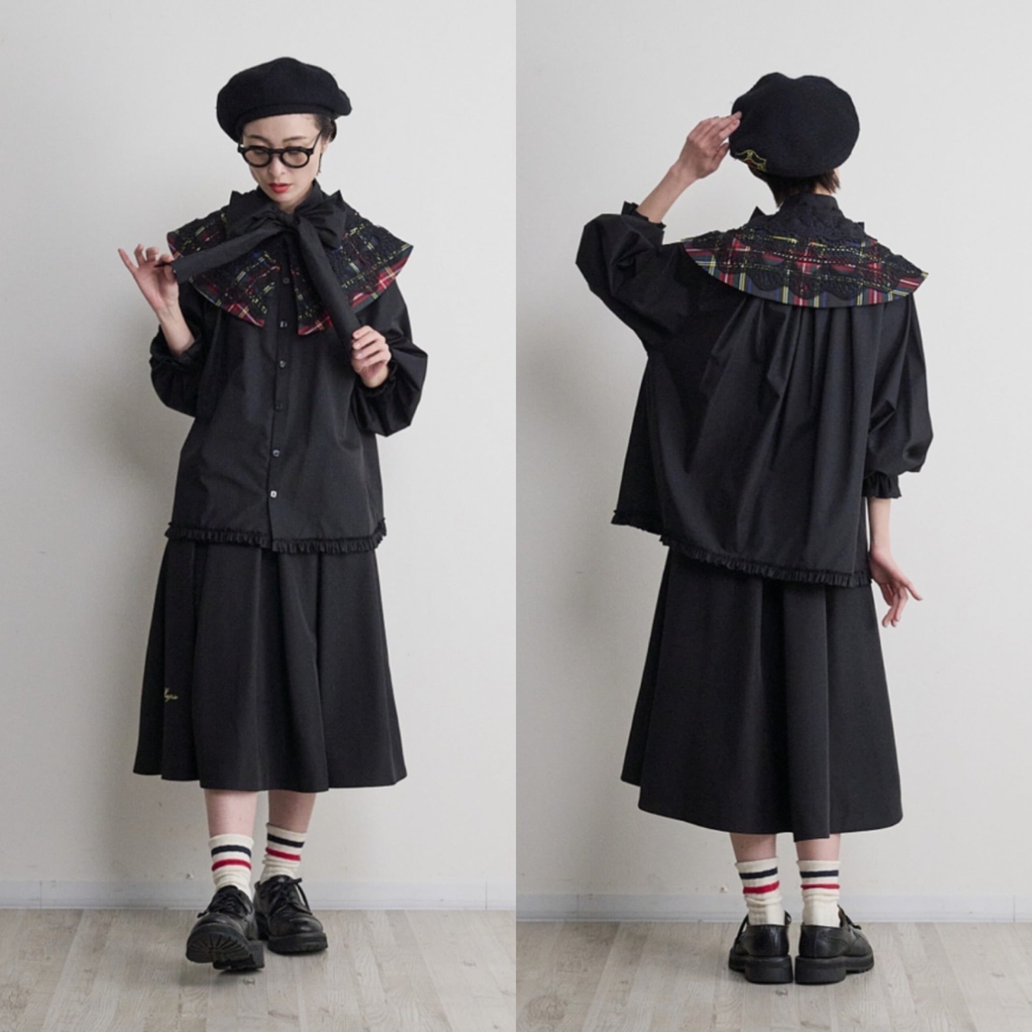 予約販売【 THOMAS MAGPIE 】check attached collar (2263106) 9月お届け