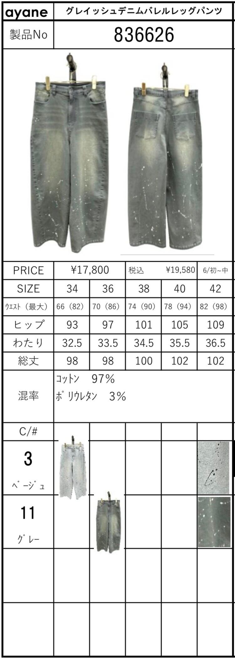 予約販売【 ayane 】グレイッシュデニムバレルレッグパンツ (836626) 6月上旬頃入荷発送予定