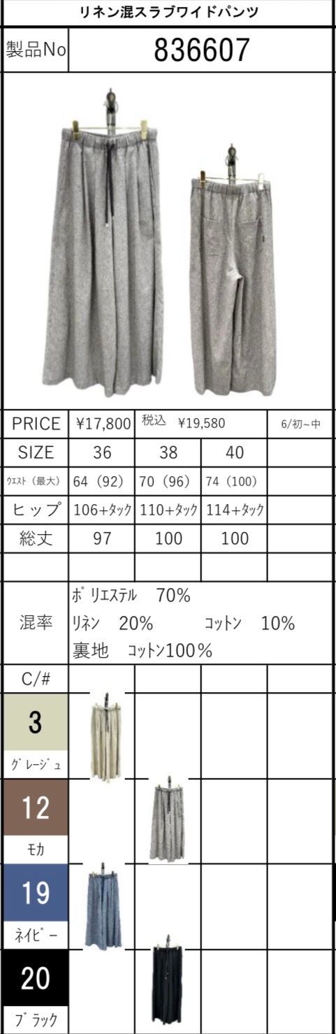 予約販売【 ayane 】リネン混スラブワイドパンツ (836607) 6月中旬頃入荷発送予定