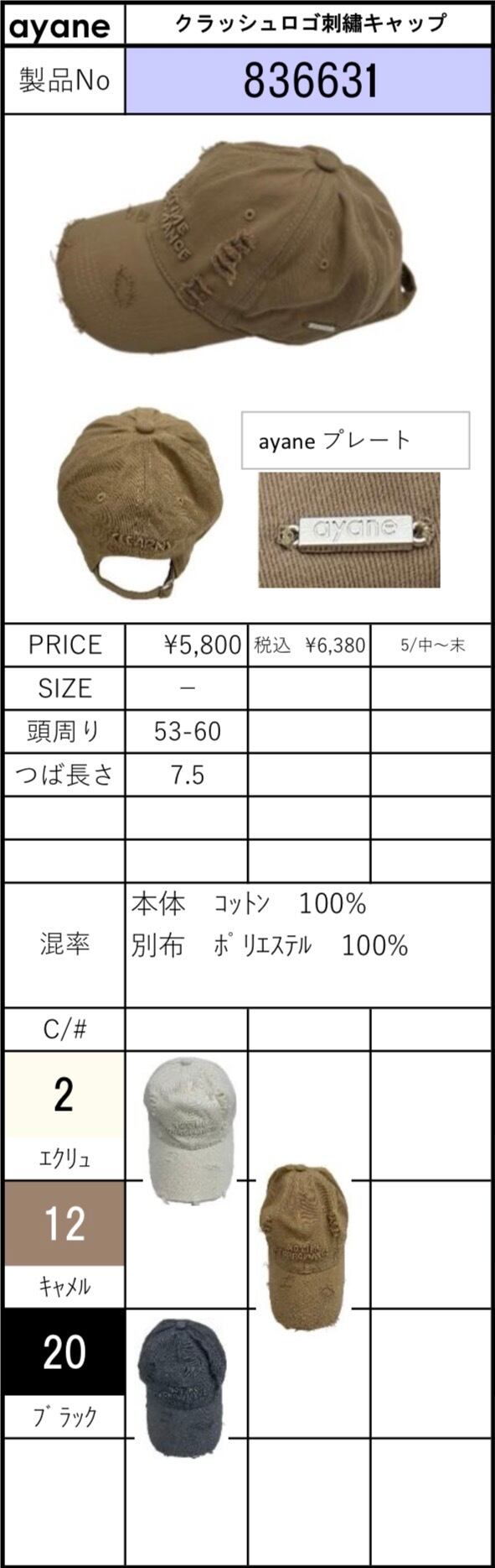⭐︎予約販売【 ayane 】クラッシュロゴ刺繍キャップ (836631) 5月下旬頃入荷発送予定