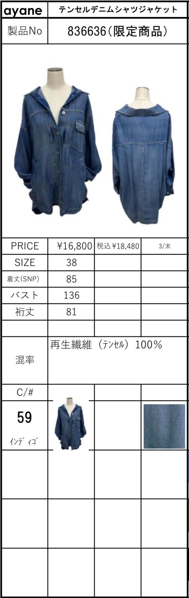 ⭐︎予約販売【 ayane 】テンセルデニムシャツジャケット (836636(限定商品)) 3月下旬頃入荷発送予定