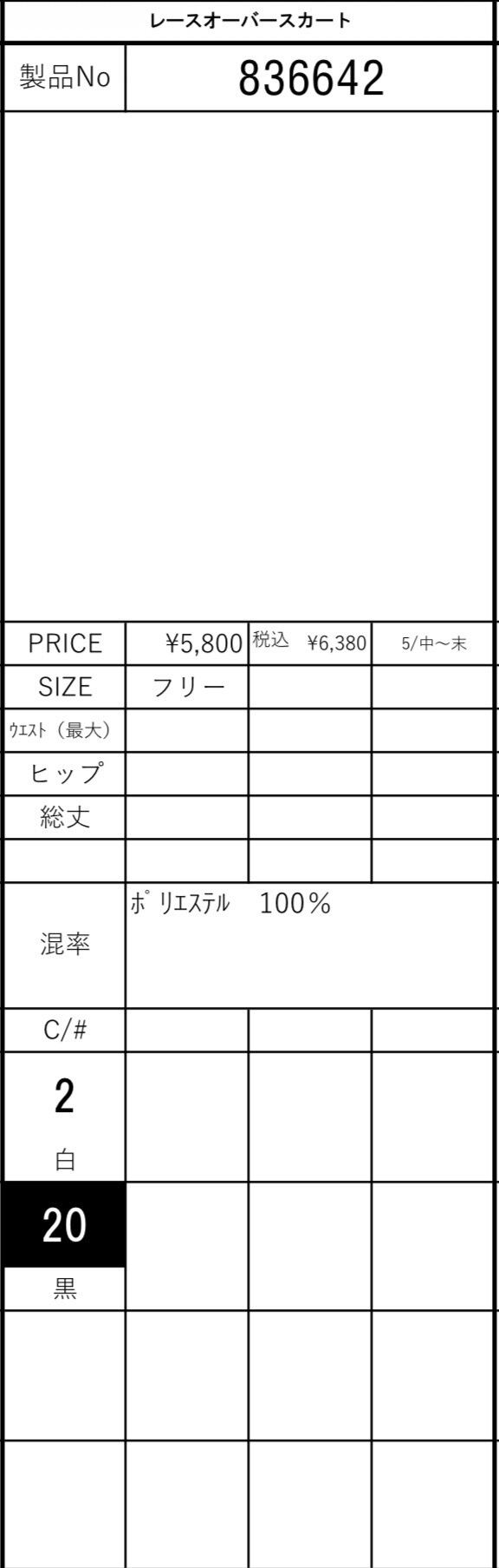予約販売【 ayane 】レースオーバースカート (836642) 5月下旬頃入荷発送予定