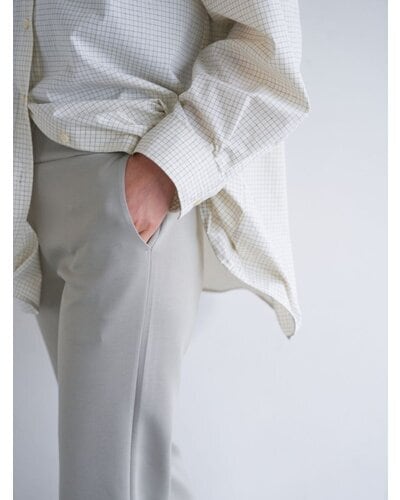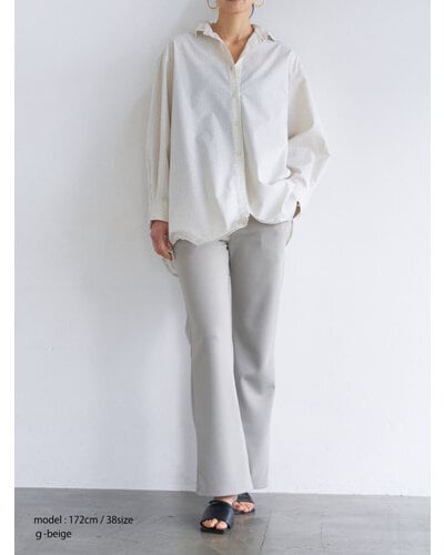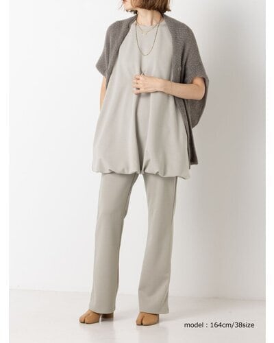 ほどよい厚みと弾力のあるダブルジャージー素材は体のラインを拾いすぎないのがポイント。イージーながらもきれいな印象を与えてくれる大人カジュアルにぴったりな素材です。ウエストのディテールはレギンスと同じ仕様でストレスフリーに、