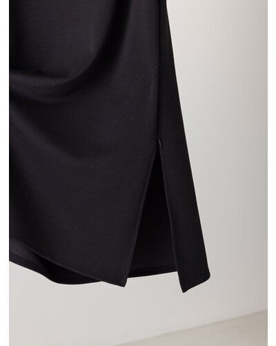 動くたびに揺れる裾は弾力のある生地と相性もよく、イージーながらも女性らしいきちんと感をプラスします。