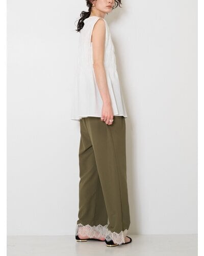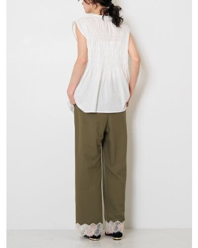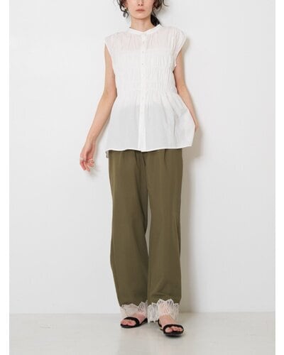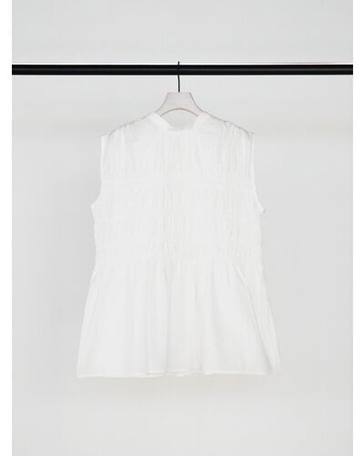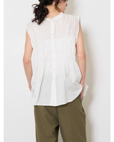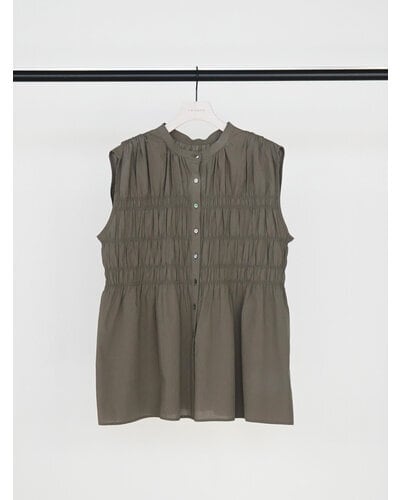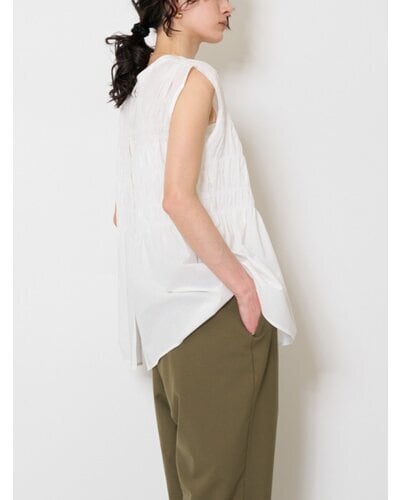 やわらかなコットン素材を使用した、シャーリングブラウス。