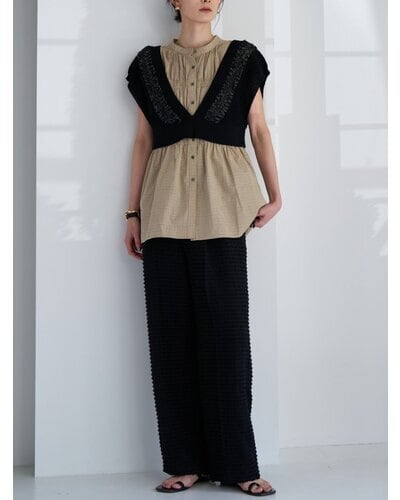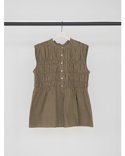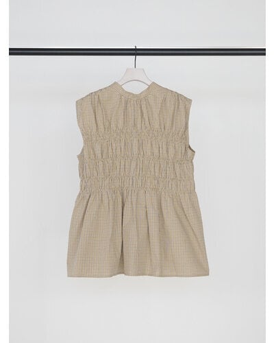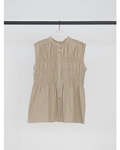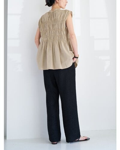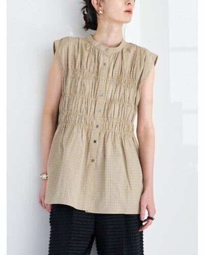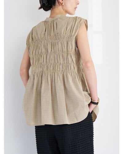 やわらかなコットン素材を使用した、チェック柄のシャーリングブラウス。