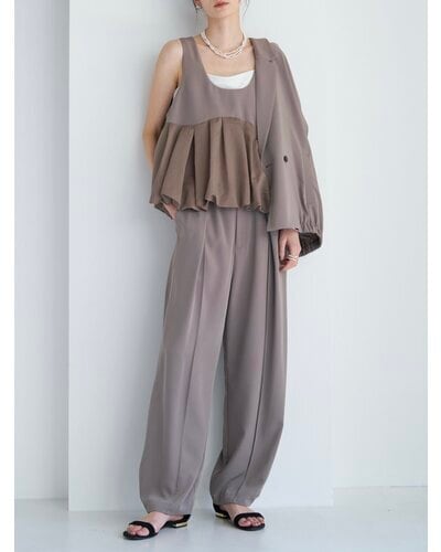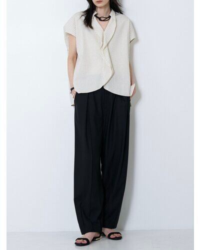トップスをインしてもアウトでも決まりやすく、同素材で企画した構築的なビスチェ(1263-624MK)やジレ(4263-625MK)とのセットアップスタイルもおすすめ。