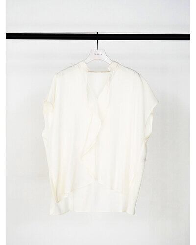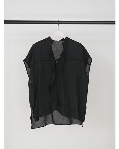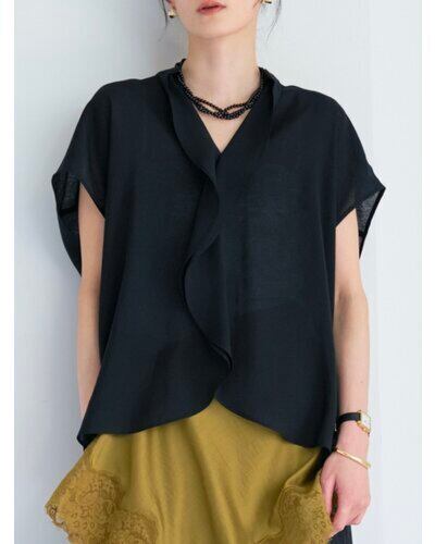 軽やかな透け感と、裾まで続く流れるようなラッフルが印象的なデザインブラウス。