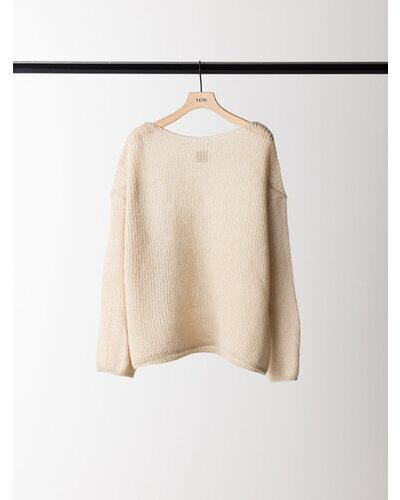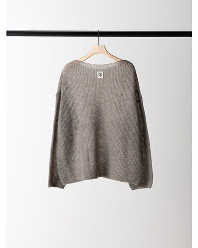 細番手のモヘア混の糸で編み立てたニットプルオーバーです。