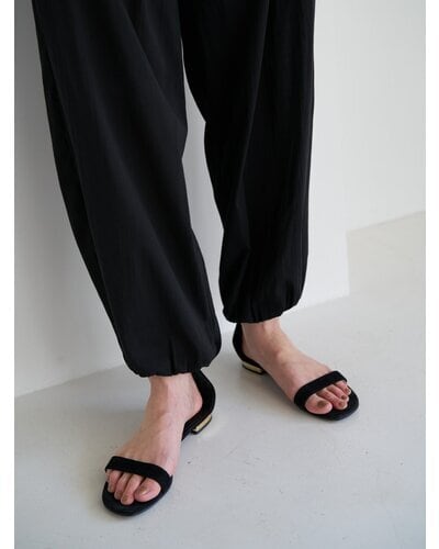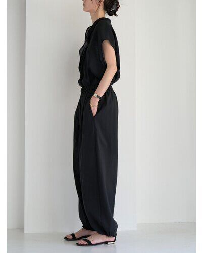 裾にはゴムを入れ、さらにゴムを内側に巻き込む仕様にすることで、カジュアル感を抑え、きれいめなモード感をプラス。