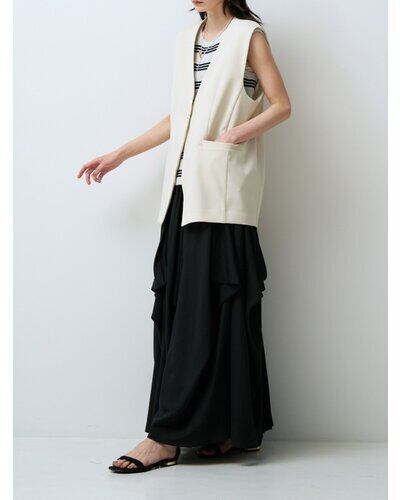 着丈を長めに設定した、オーバーシルエットのジレ。