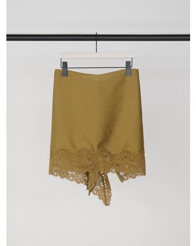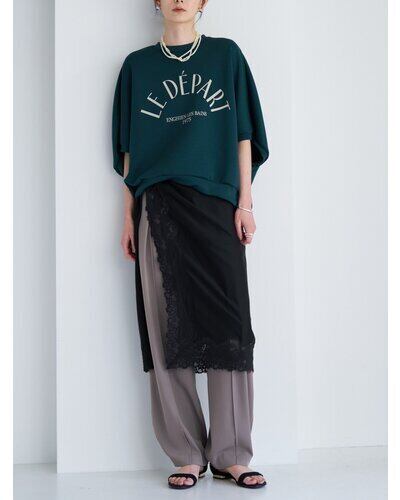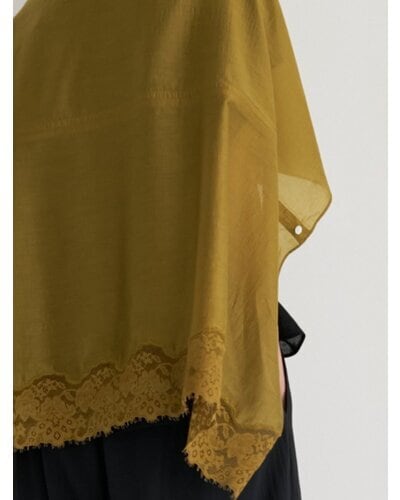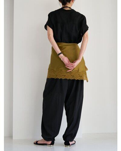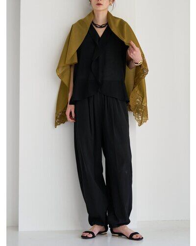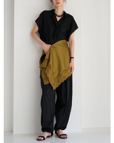 シアー素材に同色レースを刺繍を施して華やかさをプラス。
