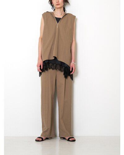 フロントにはセンターピンタックを施し、カットソー特有のやわらかさにさりげないアクセントをプラス。縦のラインを強調することで、脚をまっすぐ長く見せてくれます。