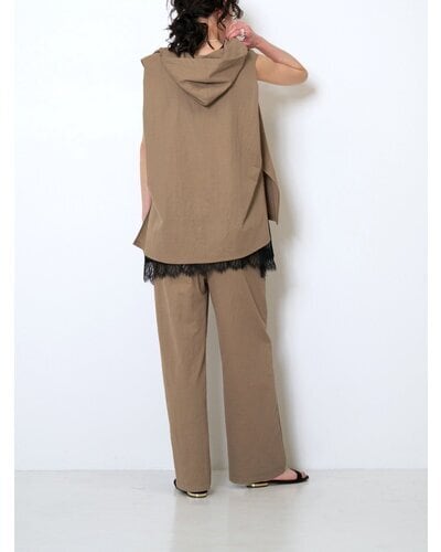 同素材のフーディと合わせれば、こなれ感のある大人のセットアップスタイルが完成します。