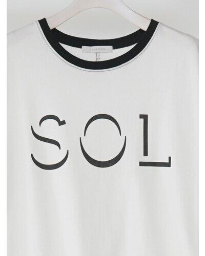 配色の衿がいつものフレンチTシャツに遊び心を加えてくれるリンガーロゴフレンチ。浮き出たようなシンプルなロゴフォントが衿の配色と相まってモードな雰囲気+さりげなくスポーティーさも加えつつ、全体はクリーンで大人っぽい印象に仕上げています。”SOL”=ラテン語で「太陽」