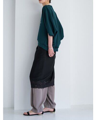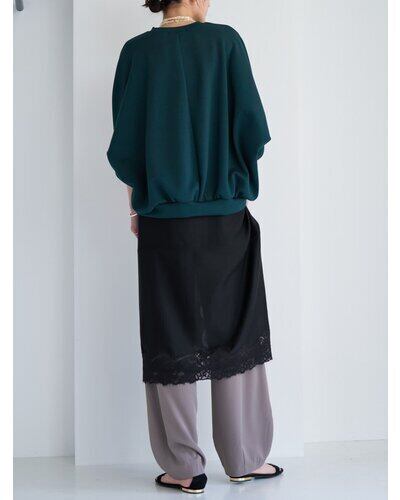 袖口のボリュームと前後差のあるラウンドヘムが、シンプルながらも動きのあるフォルムをつくります。身体のラインを拾いにくく、リラックス感のある着心地も魅力。