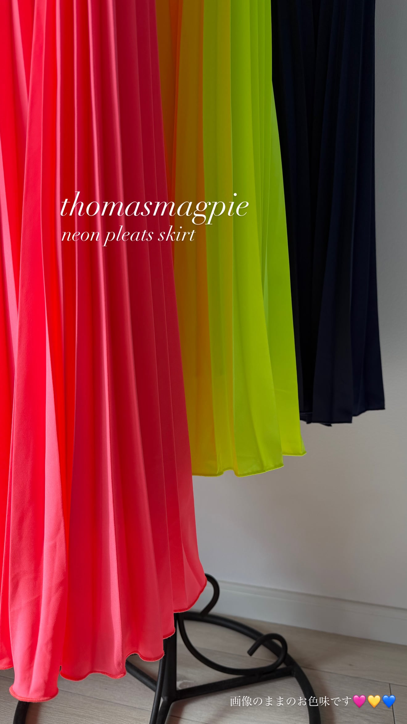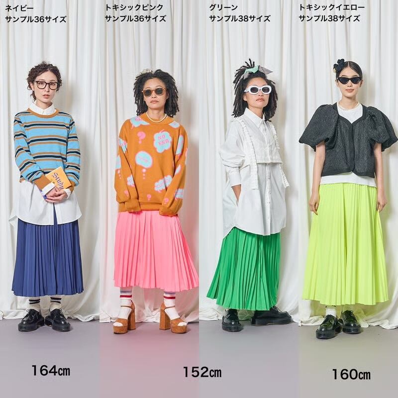 いつも大人気の定番プリーツの復活です。以前何度も出していたネオンカラーのプリーツスカートですが、