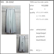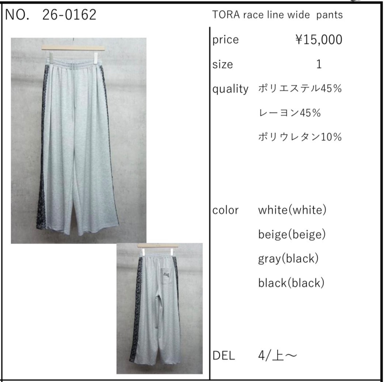 予約販売【 TRANOI. 】TORA race line wide pants (26-0162) 4月下旬頃入荷発送予定