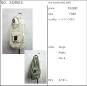 予約販売【 TRANOI. 】one handle BIG BAG (242R615) 4月下旬頃入荷発送予定