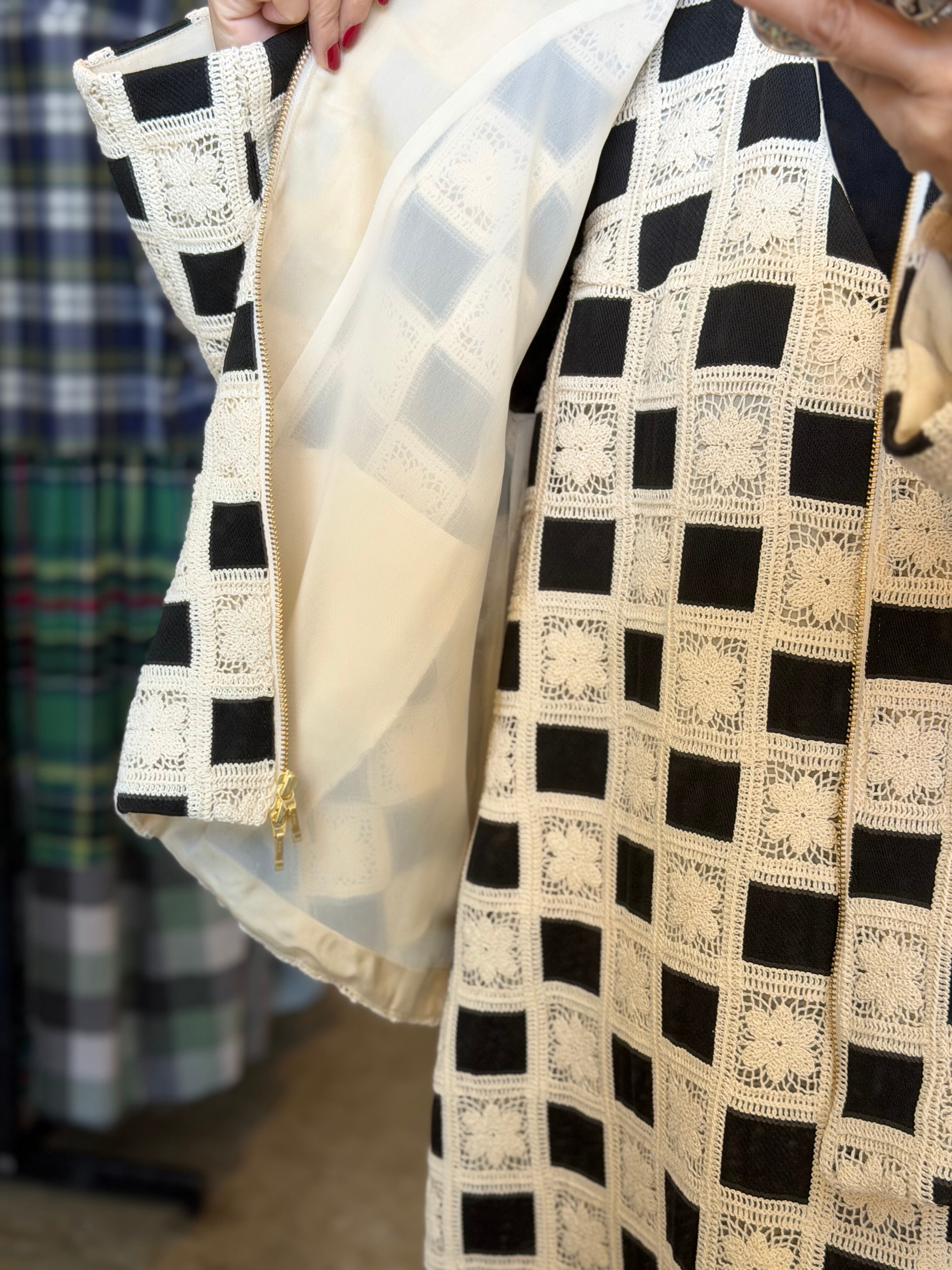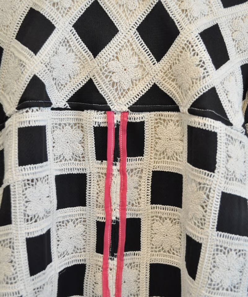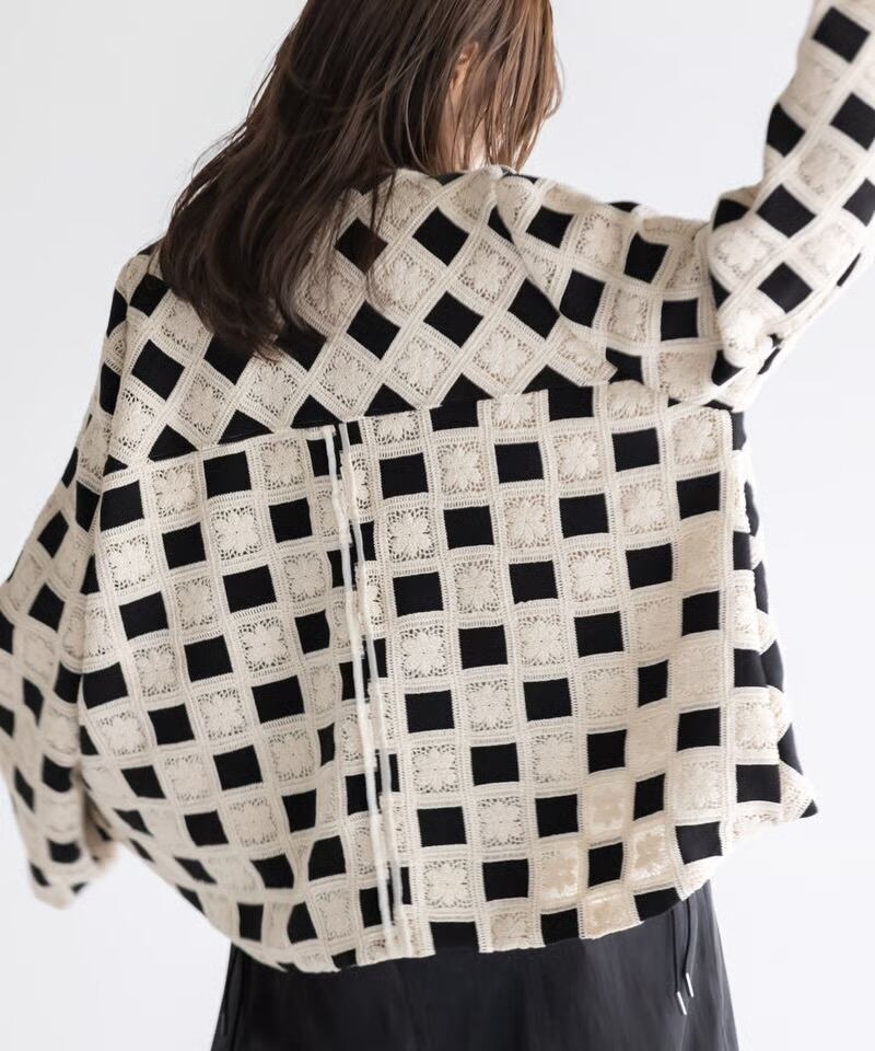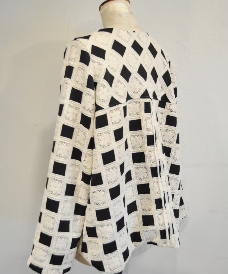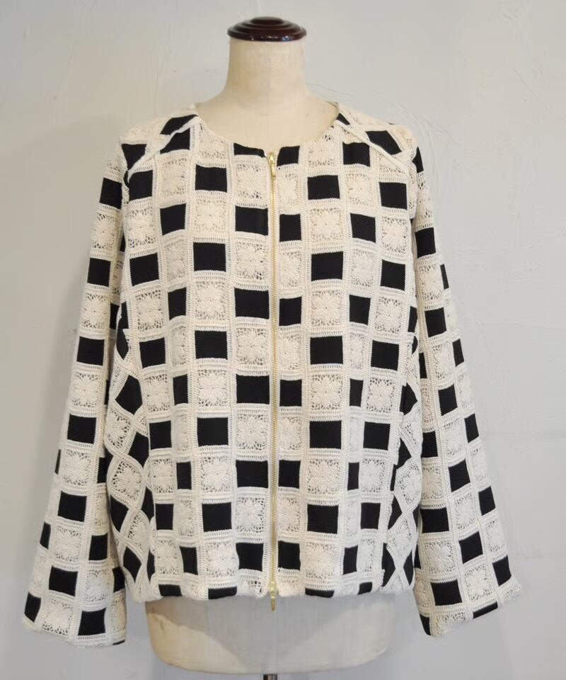 クラシカルなグラニースクエアモチーフを全面に配した、存在感抜群のジップジャケットです。
