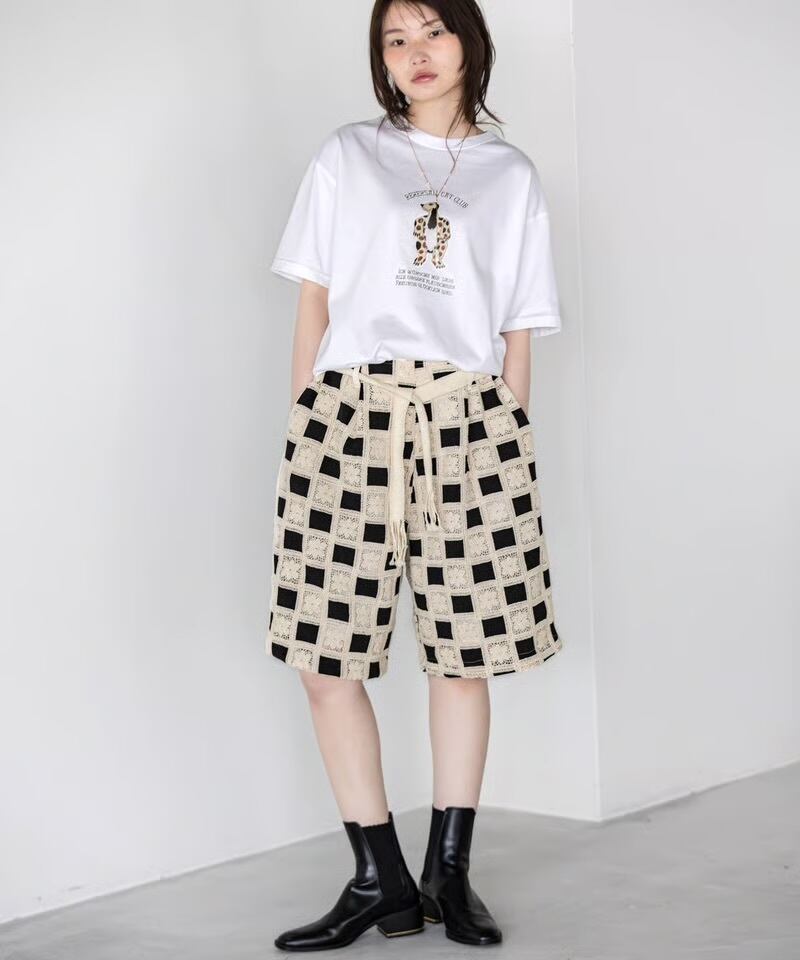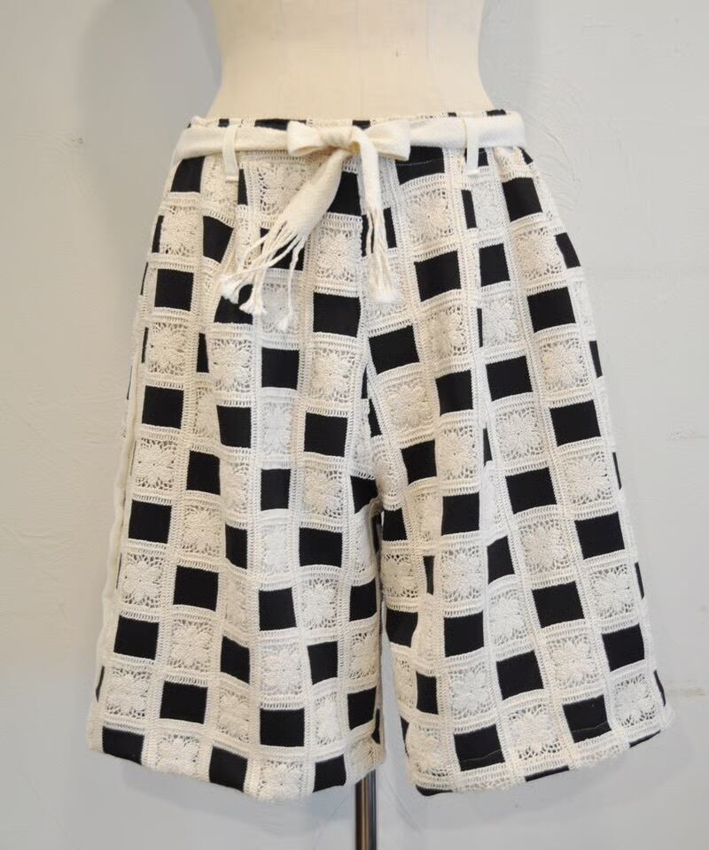 グラニースクエアレースを全面に使用した、存在感のあるショートパンツです。 程よくゆとりのあるシルエットで、リラックス感のある履き心地。