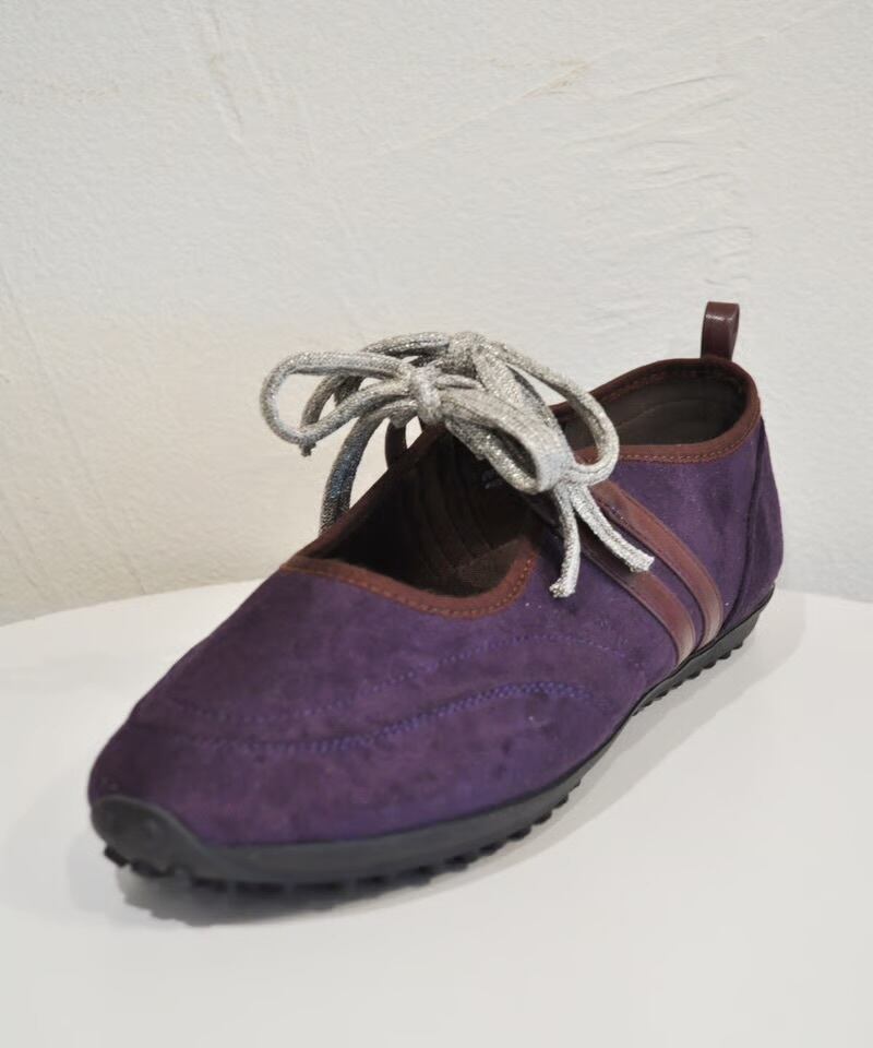 バレエシューズのような華奢さと、スニーカーの履き心地を掛け合わせた一足。 クラシカルなフォルムにラインディテールを効かせ、