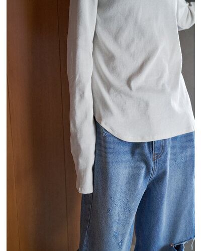 繊細な綿素材のリブ生地を使用。通常の糸と比較して格段に毛羽が少なく、シルクのような光沢や滑らかさがでるというのが特徴のコンパクトヤーンを使用したリブ生地を採用、上品な滑らかさのあるコットンリブは肌さわりも良くおすすめです。 程よく体に沿うようにデザインされているので、レイヤードのインナーにも最適です。 後衿ぐりに施したワンポイント刺繍もほどよいアクセントに。 衿ぐりはあえて狭く設定、ニットやシャツの下に着たときに衿ぐりからTシャツを覗かせるスタイリングがおすすめの着こなしです。