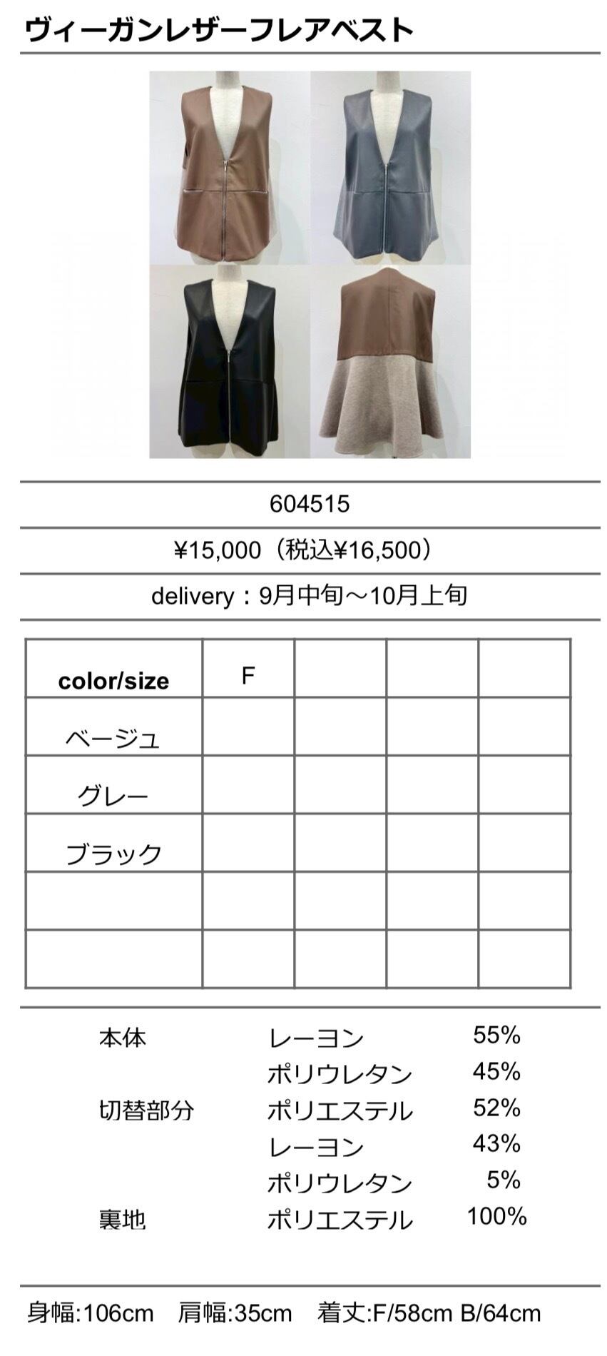 着丈:F/58cm B/64cm